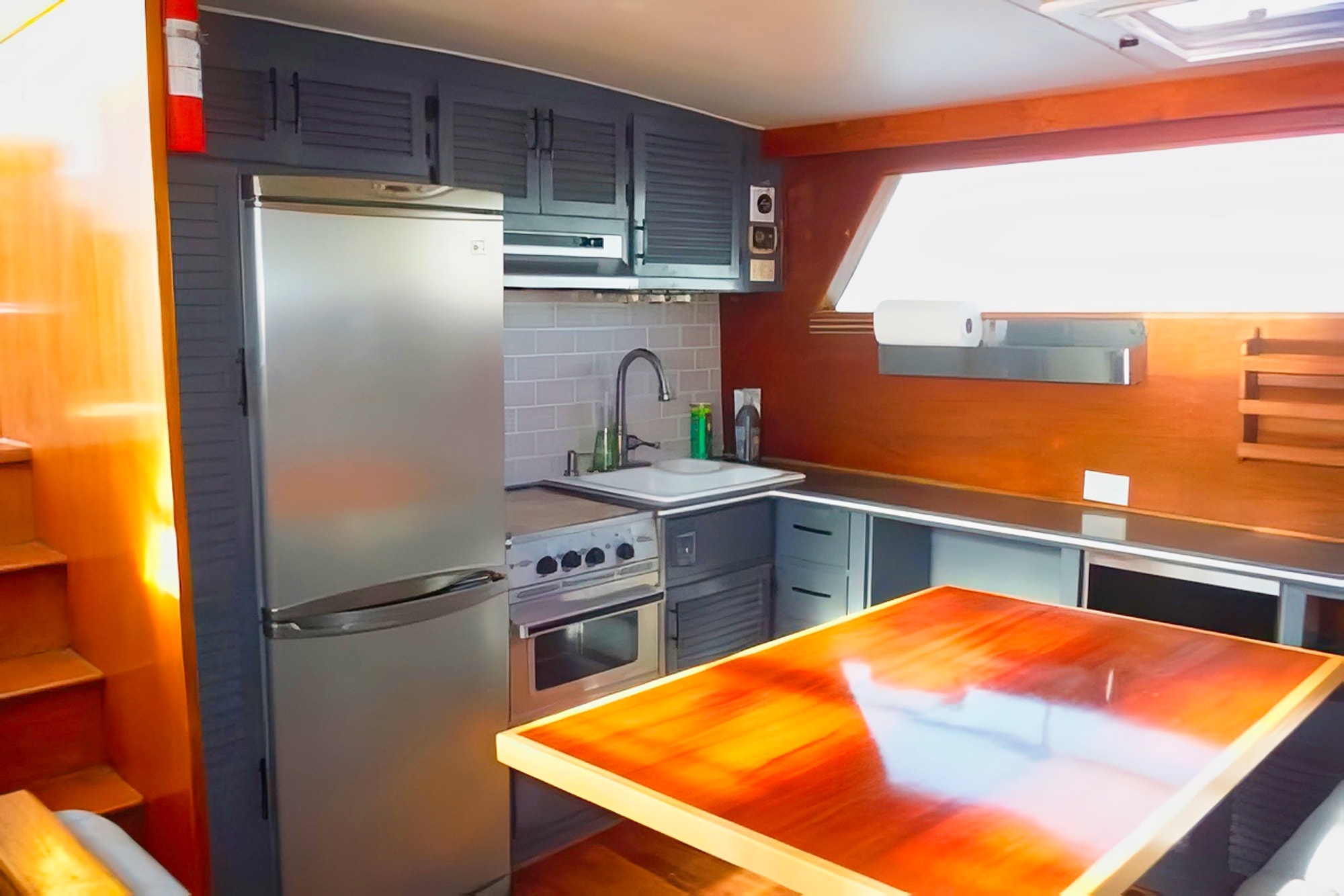 - Well equipped Large galley with lots of storage and plenty of seating.