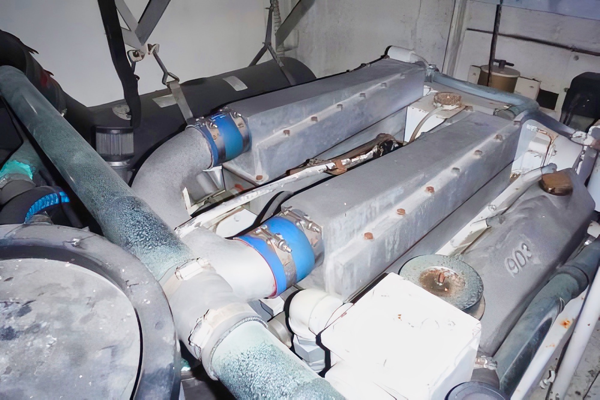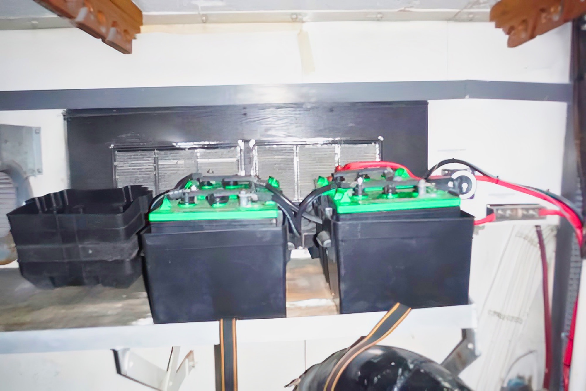- 8 house batteries, 3 dedicated starting batteries for engines and genset.