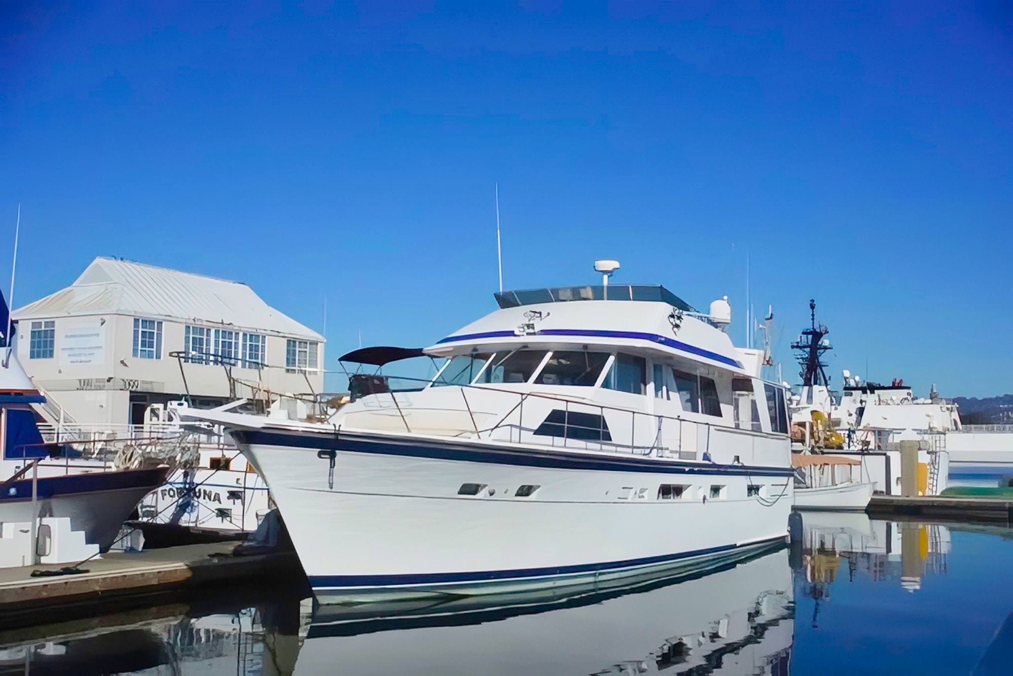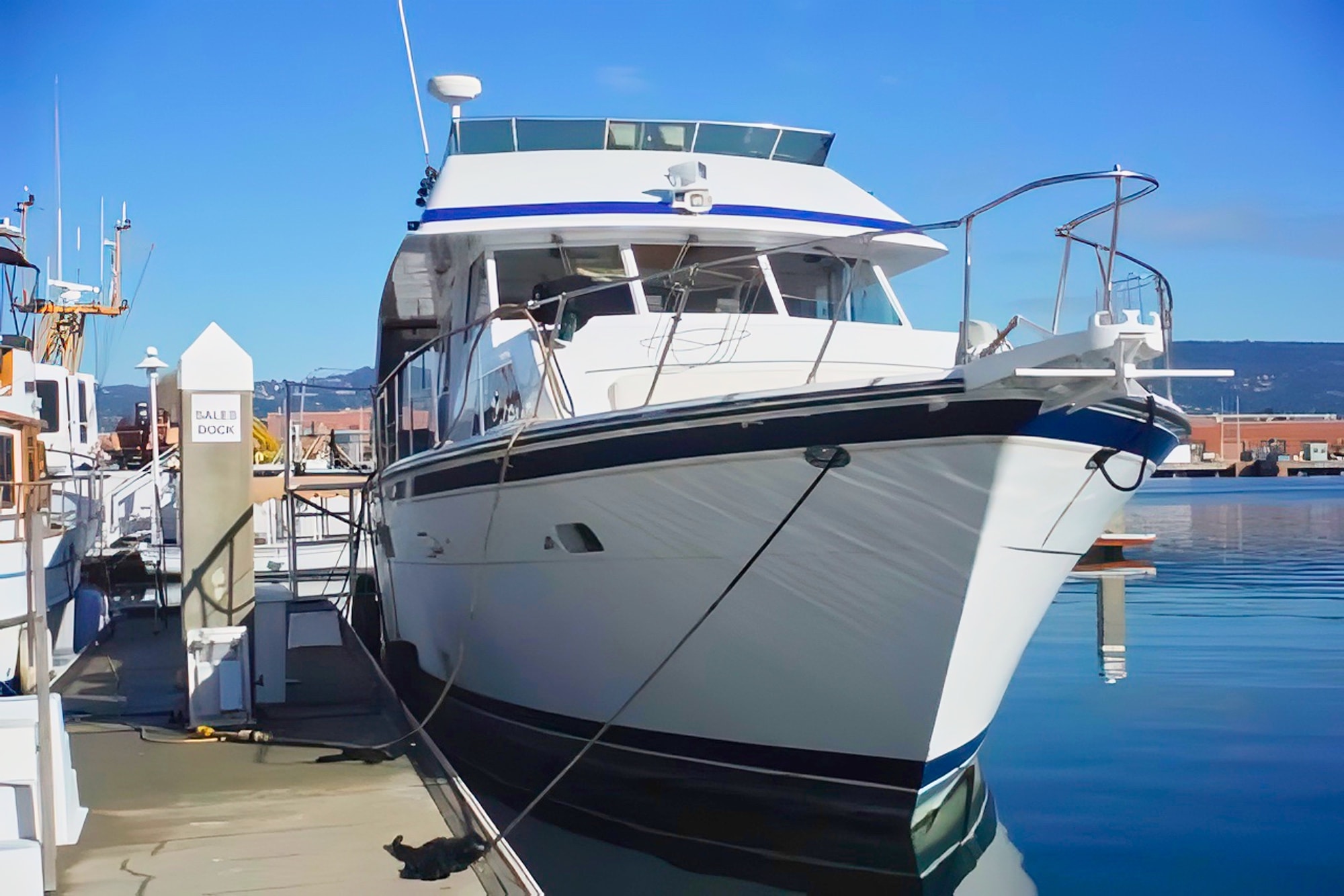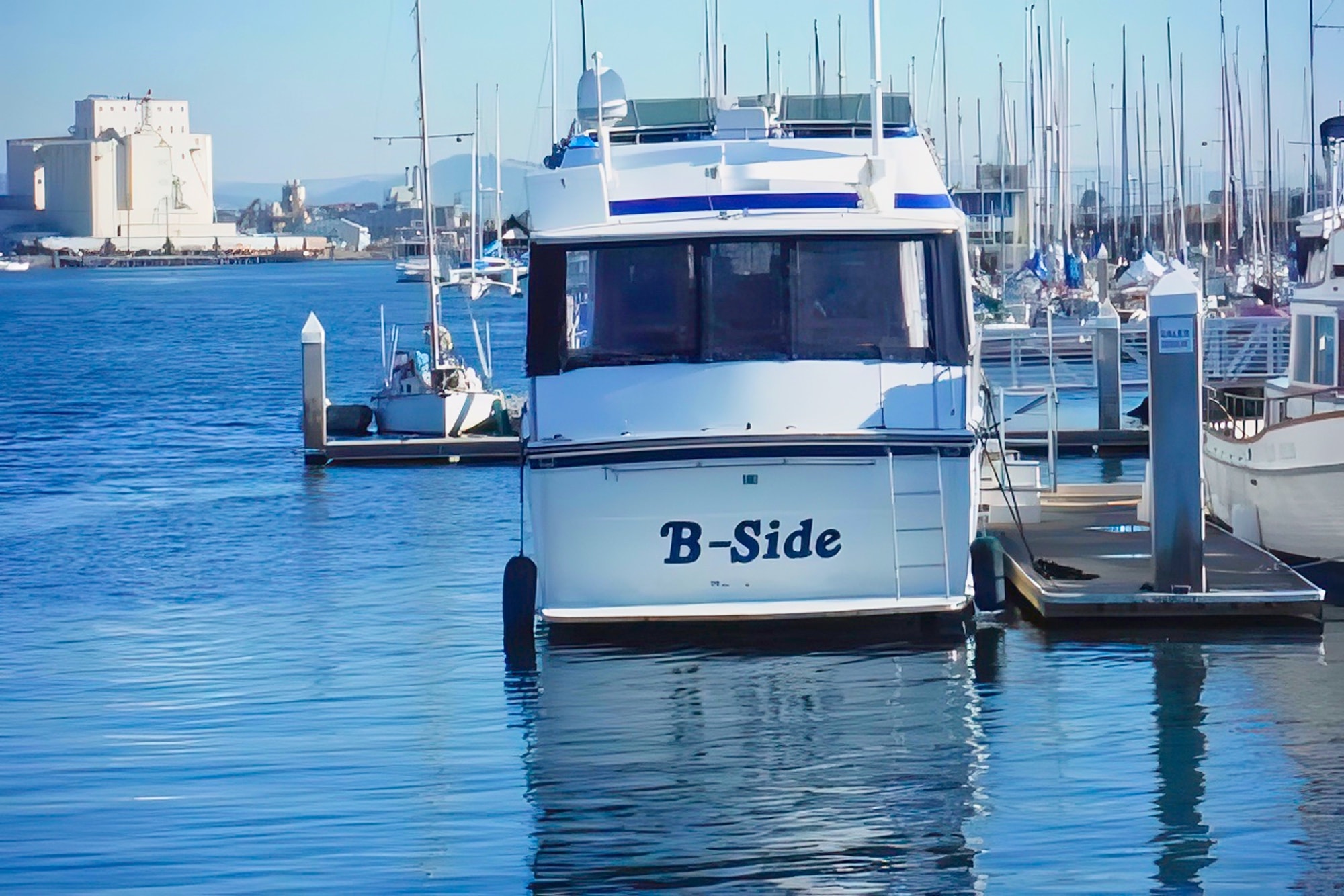B side is a fine example of a magnificent motor yacht,the largest boat ever produced by Trojan.To the best of our knowledge,only 7 were produced. She boasts 3 staterooms and 3 heads,owners stateroom has a full king bed and ensuite head with tub and shower.