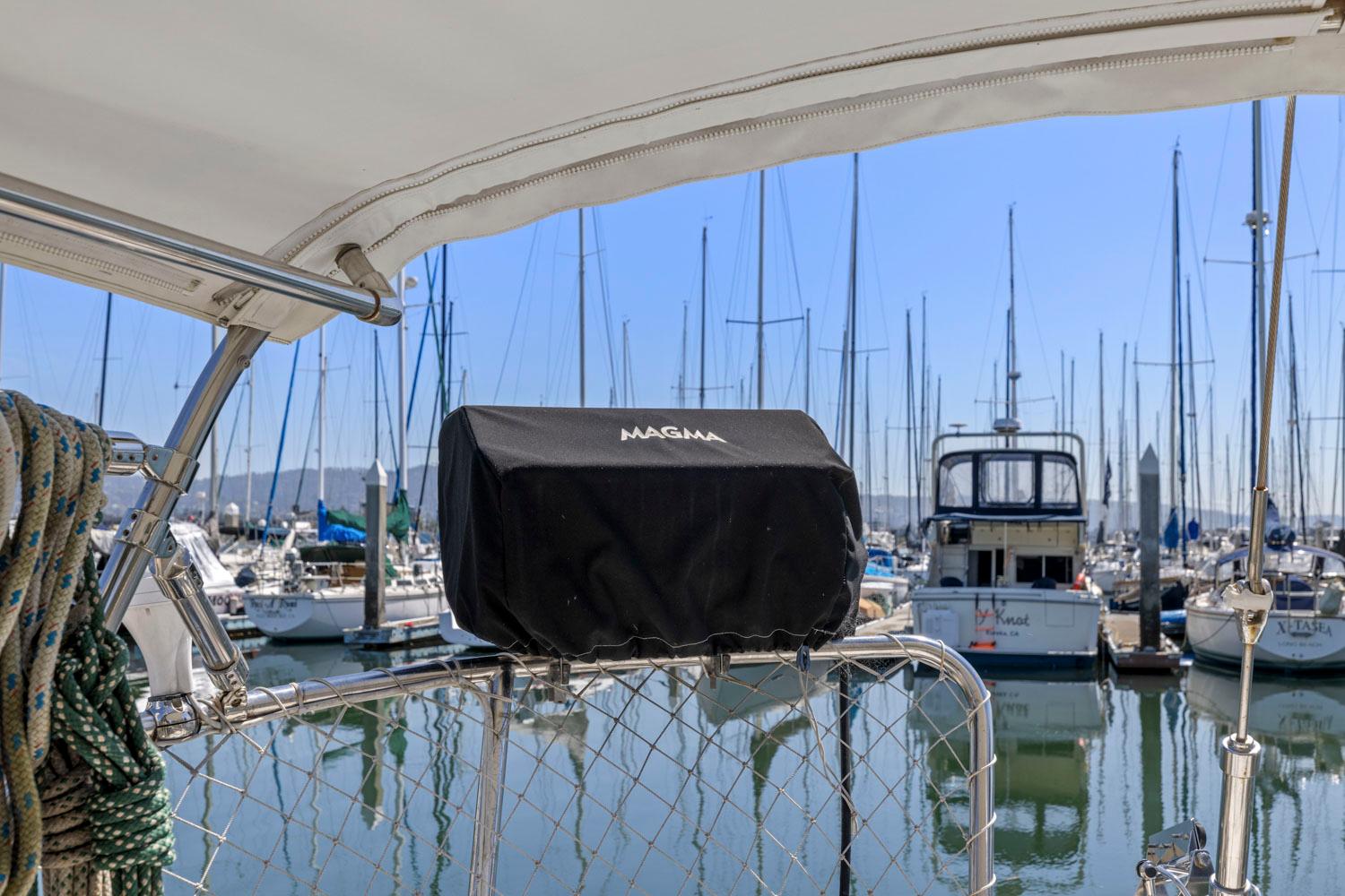 - MAGMA stainless steel LPG BBQ mounted at stern.