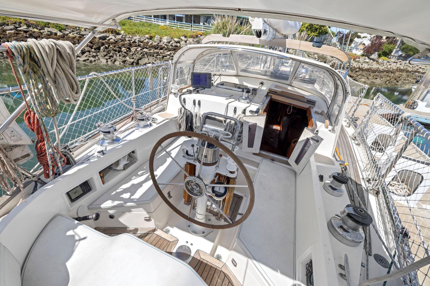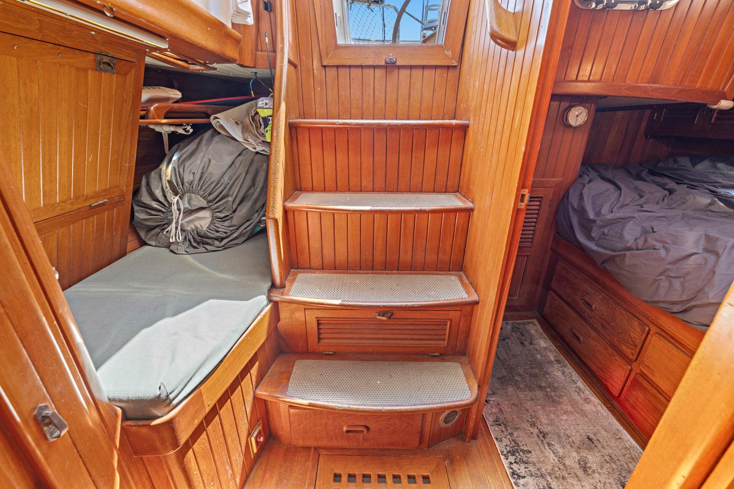 - Offset companionway with easy access stairs to the interior