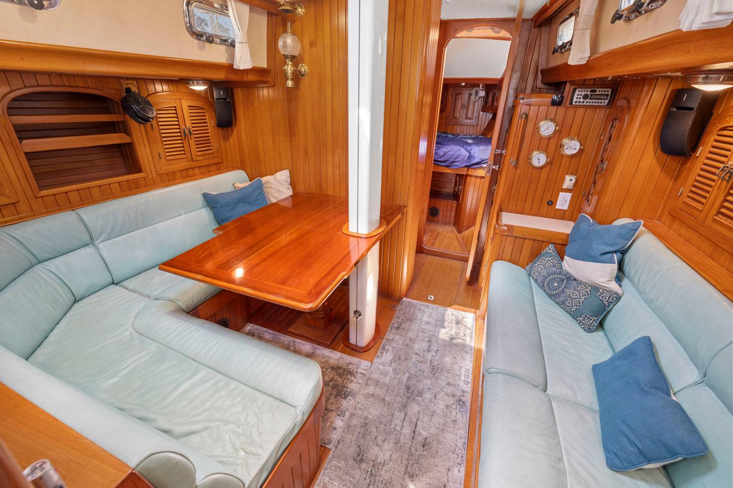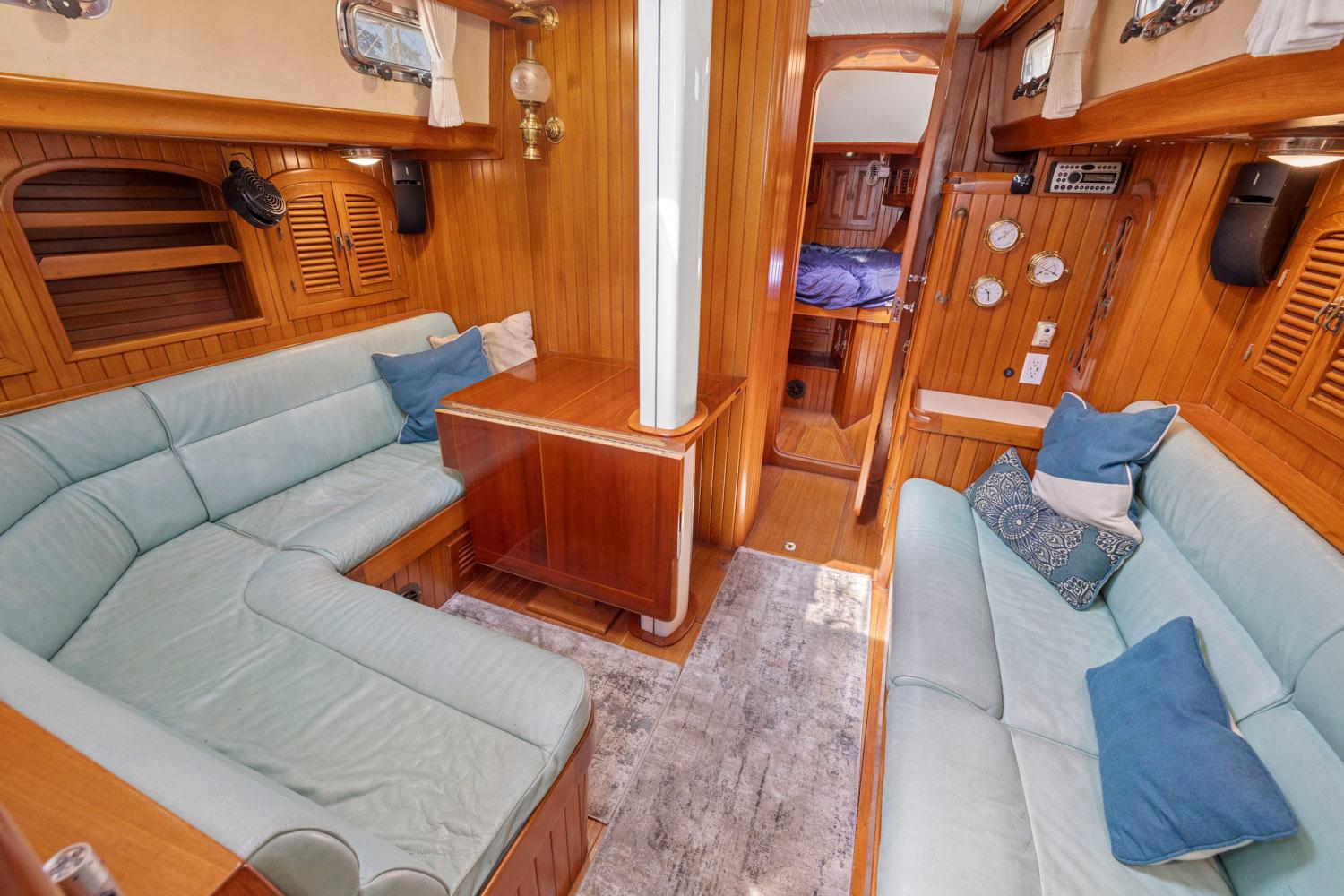 GADGET offers a spacious and well-appointed interior designed for comfortable cruising or living aboard. Here are the key details about the interior accommodations: