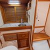 - Hanging lockers and entertainment system controls to starboard