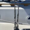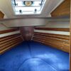 A full size head and wet locker are to port of the companionway. The aft location for the head and hanging locker is very accessible from the cockpit. There are two separate sleeping cabins each with standing headroom. Forward v-berth is double, aft stateroom berth is queen size. Both have hanging lockers.