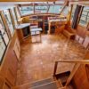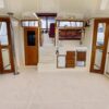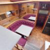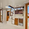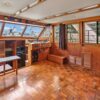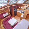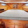 The salon is open and airy with lots of natural light. The interior helm is on the starboard side with an access door to the side deck. There is parquet flooring throughout the vessel. The headroom is 6’4” throughout most of the yacht.