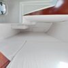 There is abundent under seat storage and additional storage behind the saloon cushions, plus substantial number of storage lockers above the seating area. Upholstery is finished in white.