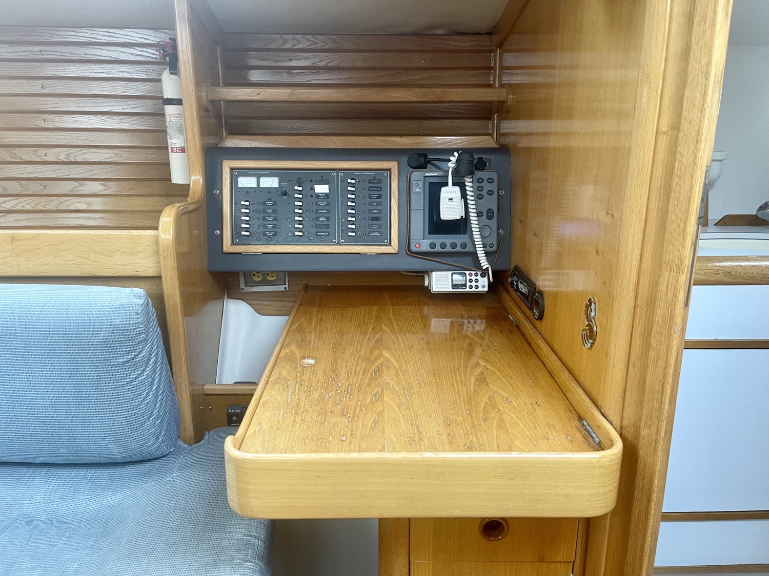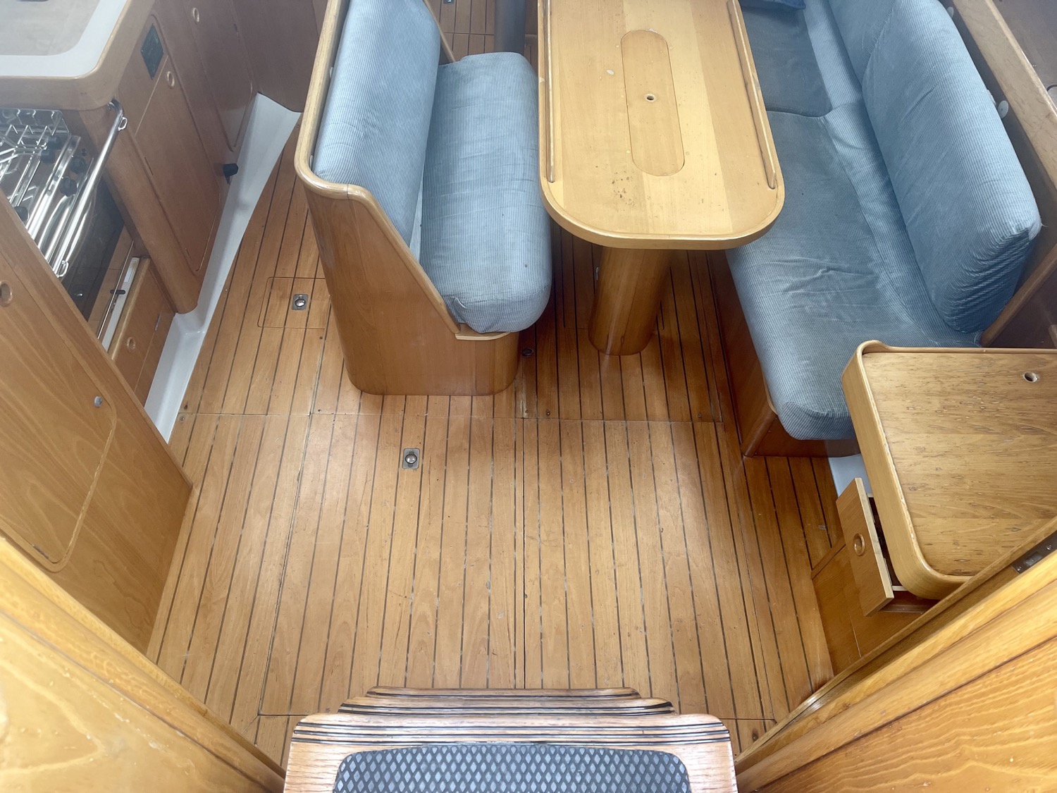 Immediately behind the companion way stairs is the Volvo Engine which you can access on all four sides.