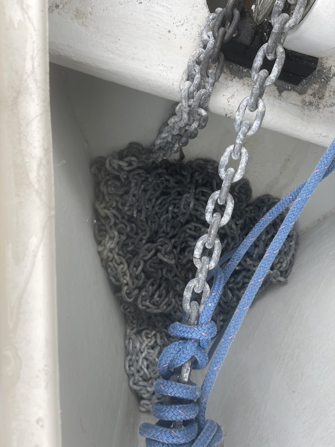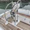Boarding from either the port or starboard side you will first notice the spacious cockpit with lockers for storage of lines, fenders, cleaning and safety equipment. Moving forward to the bow is the roller furling, Bruce 33lb anchor and roller furler for jib/genoa. It is traditional full batten sail, with a dutchmen system, with all running gear leading aft. Spinnaker is not pictured but comes with the boat. Rigged for Asymmetrical Sail which is onboard.