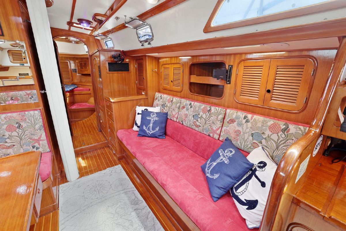 - New custom cushions in main salon, both cabins and navigator’s seat