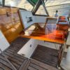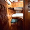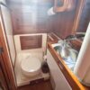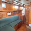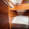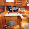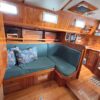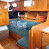 Her layout includes abundant cabinet storage, the shower is separate from the head, and the captain’s stateroom in v-berth. No aft cabin means more storage. The settee can become a double berth for guests.