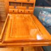 - Custom teak serving tray stores on top of stove