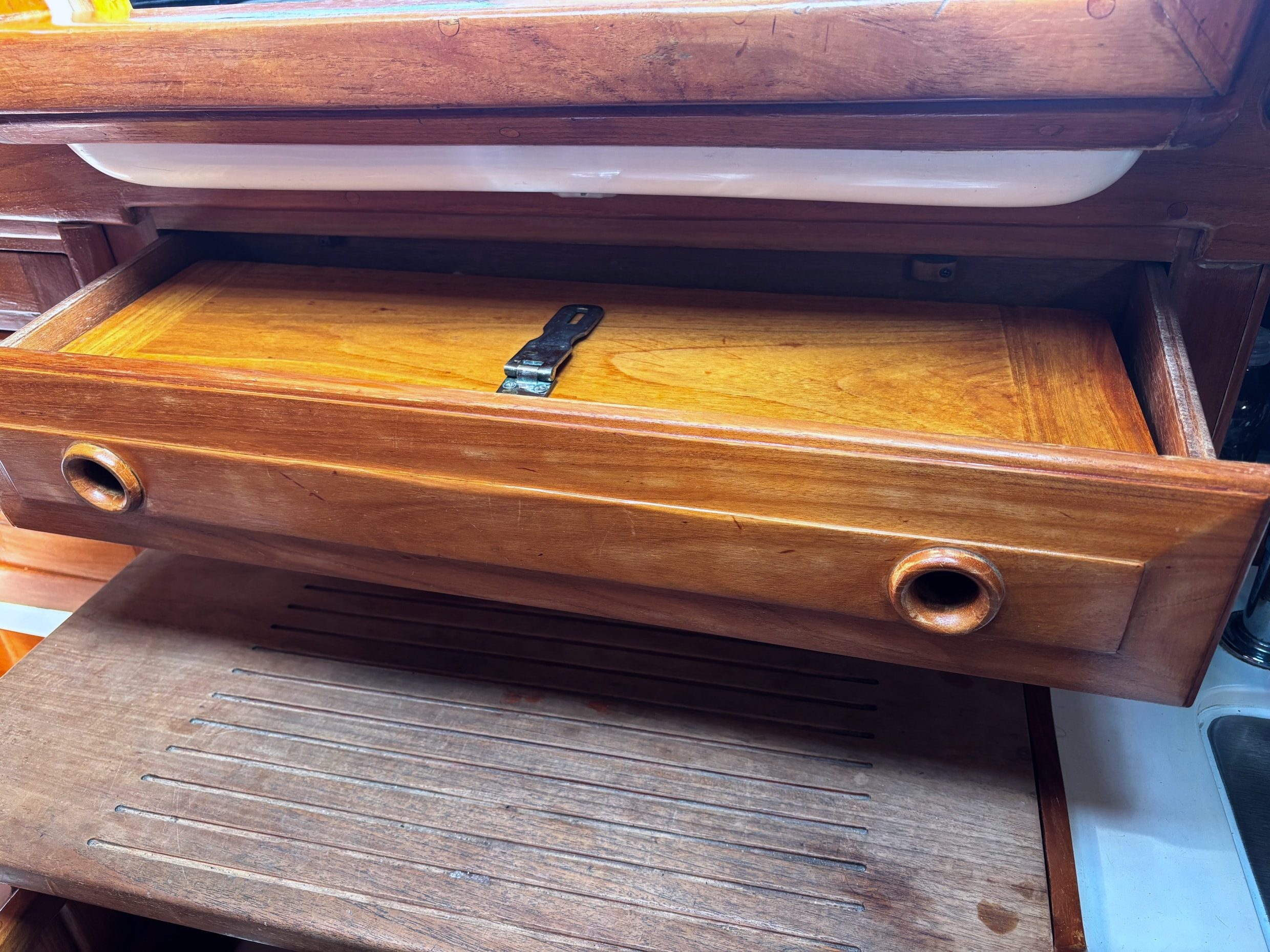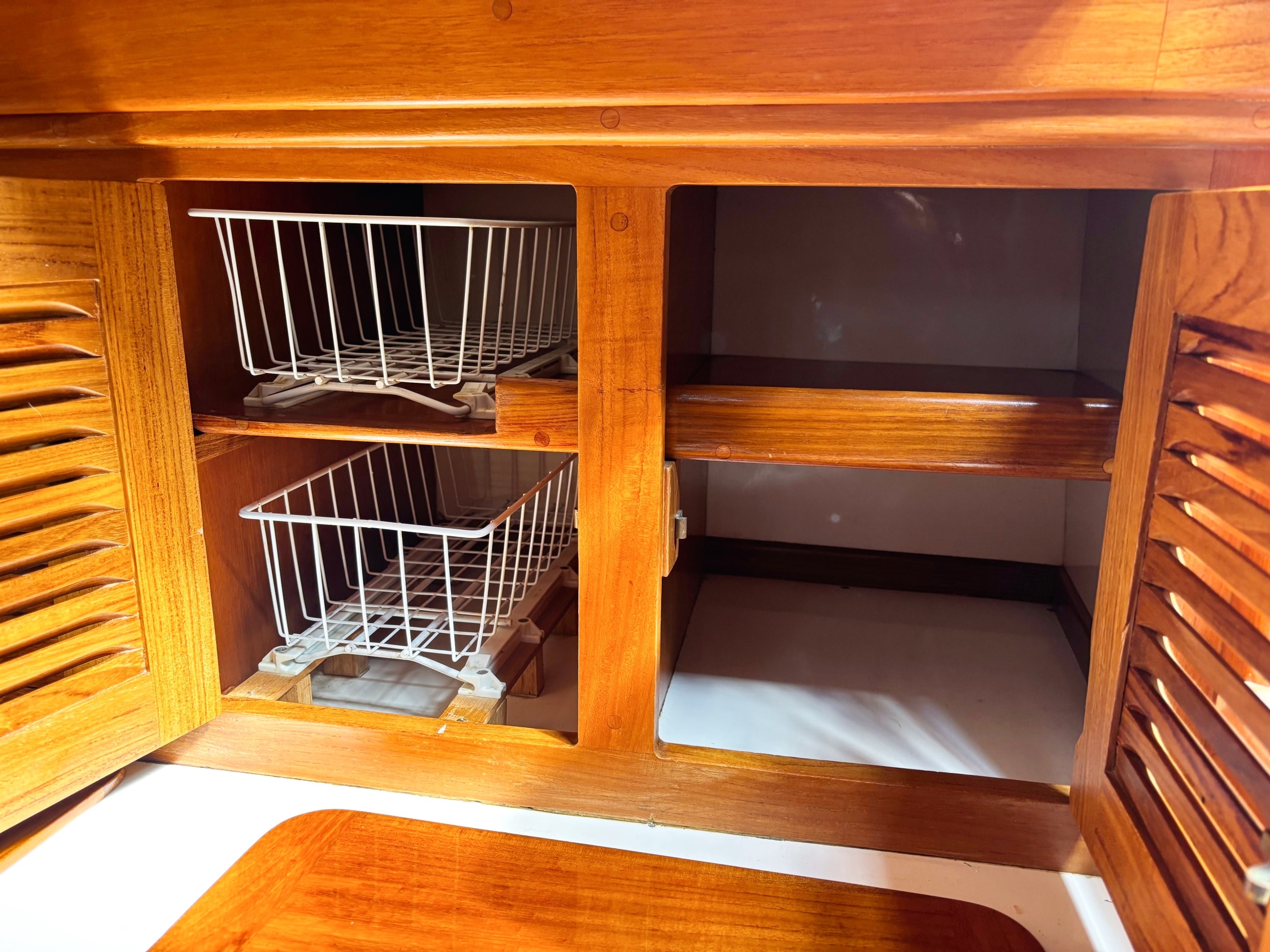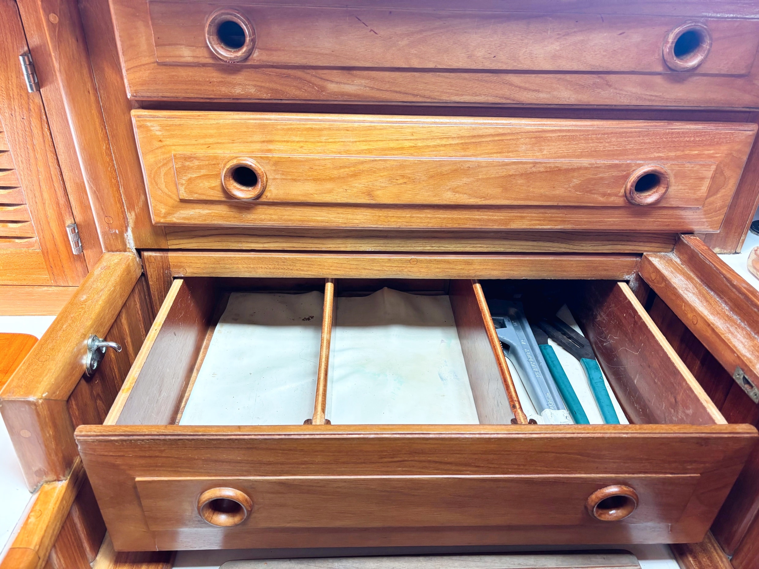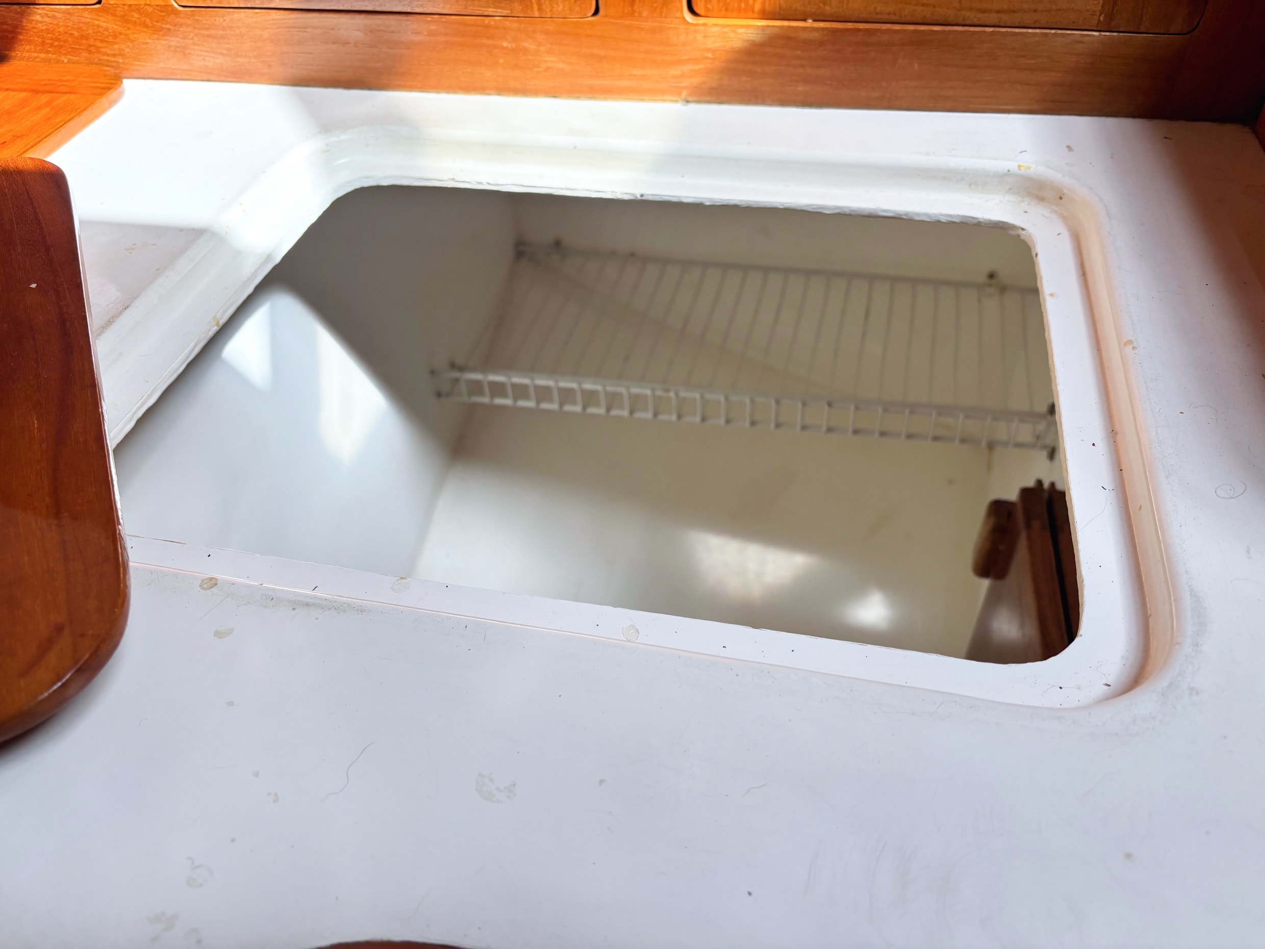- Teak covered secondary anchor locker