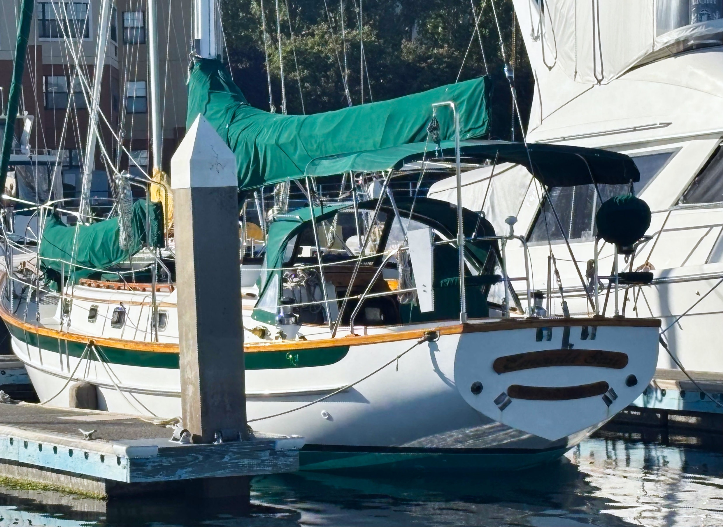 EMERALD STAR is a beautiful sailing vessel with the classic look of days gone by. This full keel Cabo Rico 38 is a true offshore yacht. Designed by William Crealock, it is highly regarded among those who choose the cruising lifestyle.