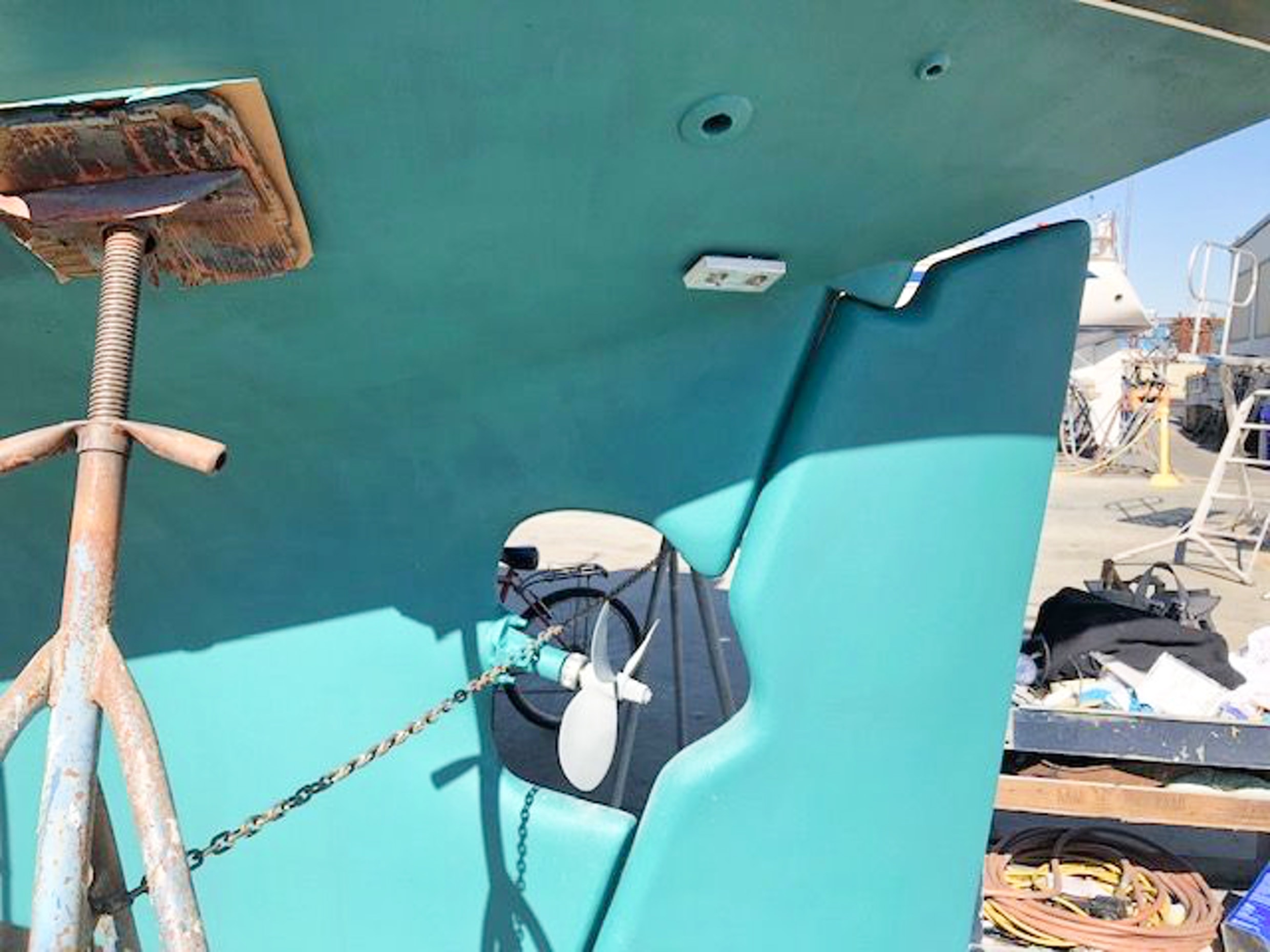- CQR 45 lb anchor with 250′ high tensile chain