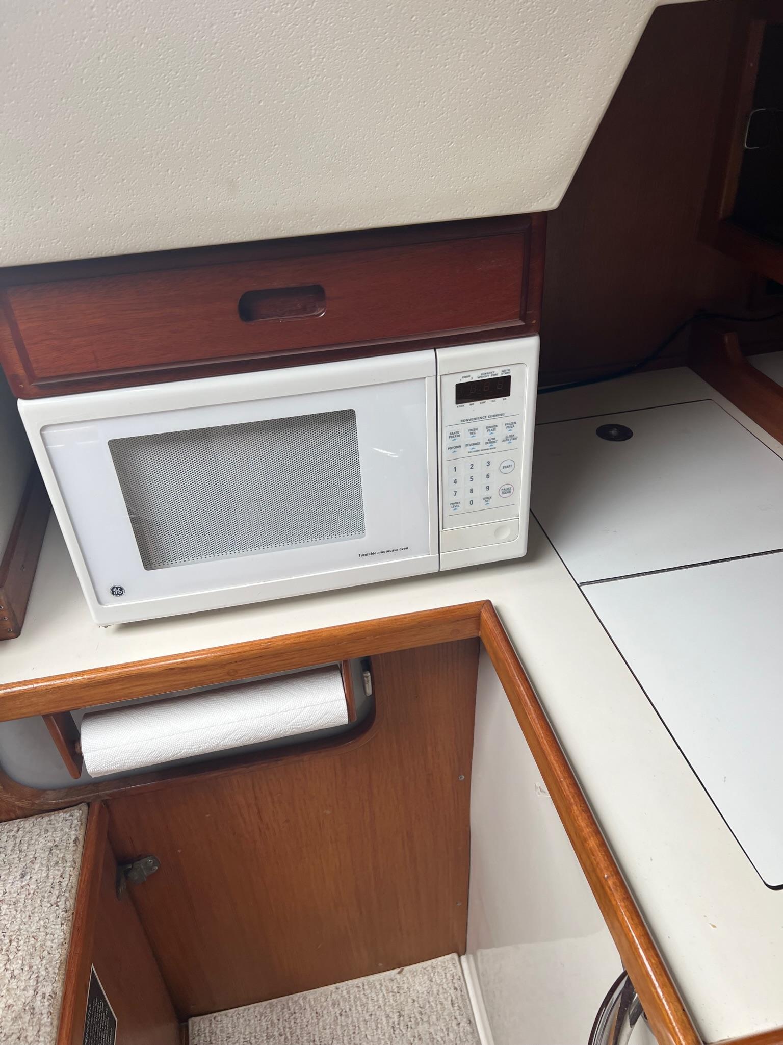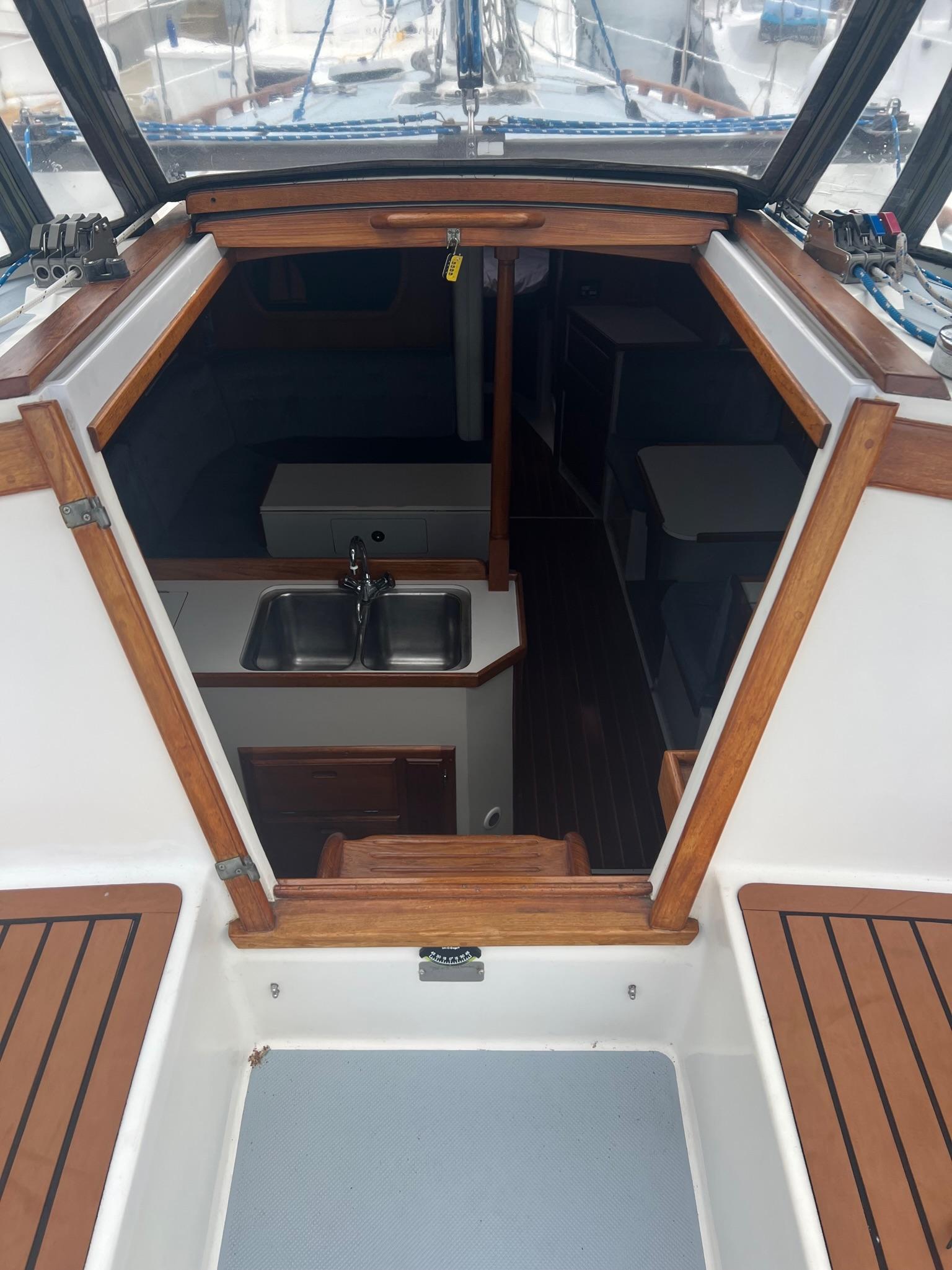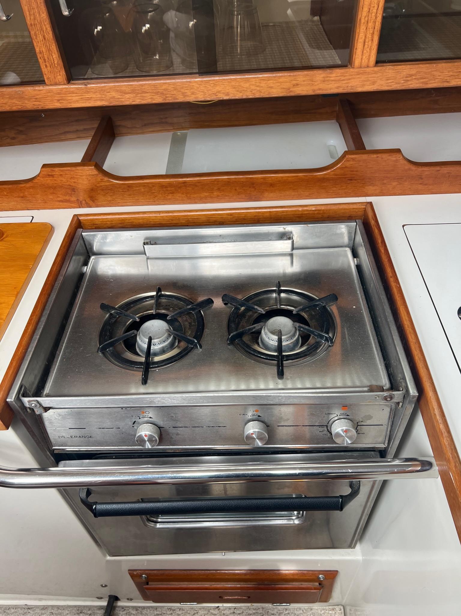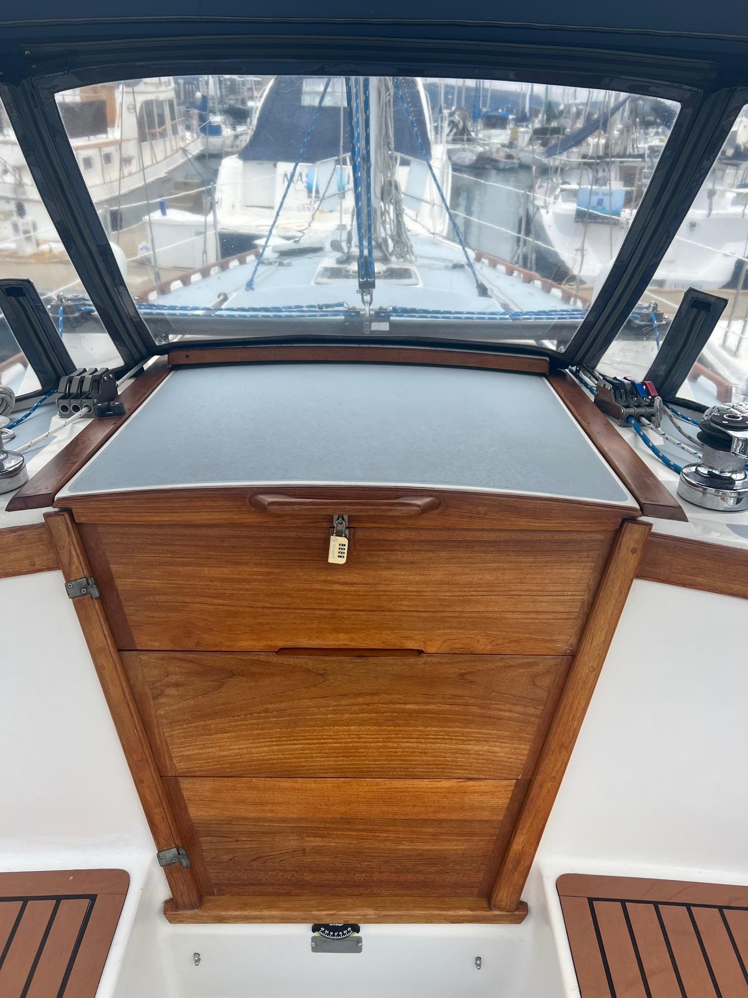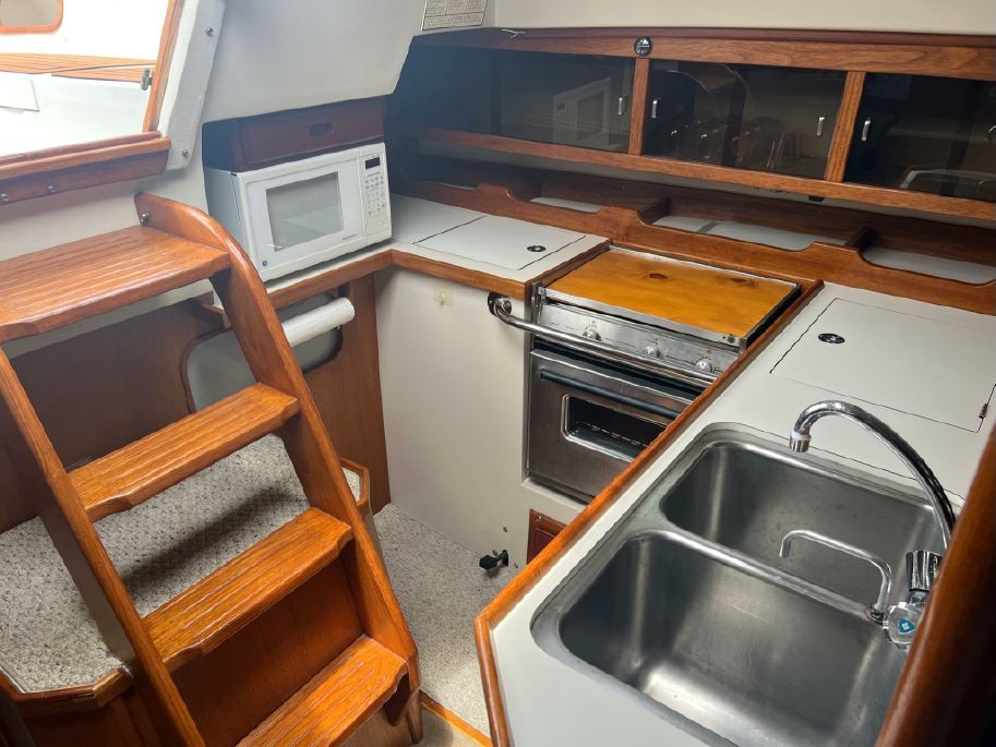The galley is to port of the companionway, with a large amount of storage and good-sized working area. This makes is a dream to create your favorite dish, in port, underway, or on the hook.