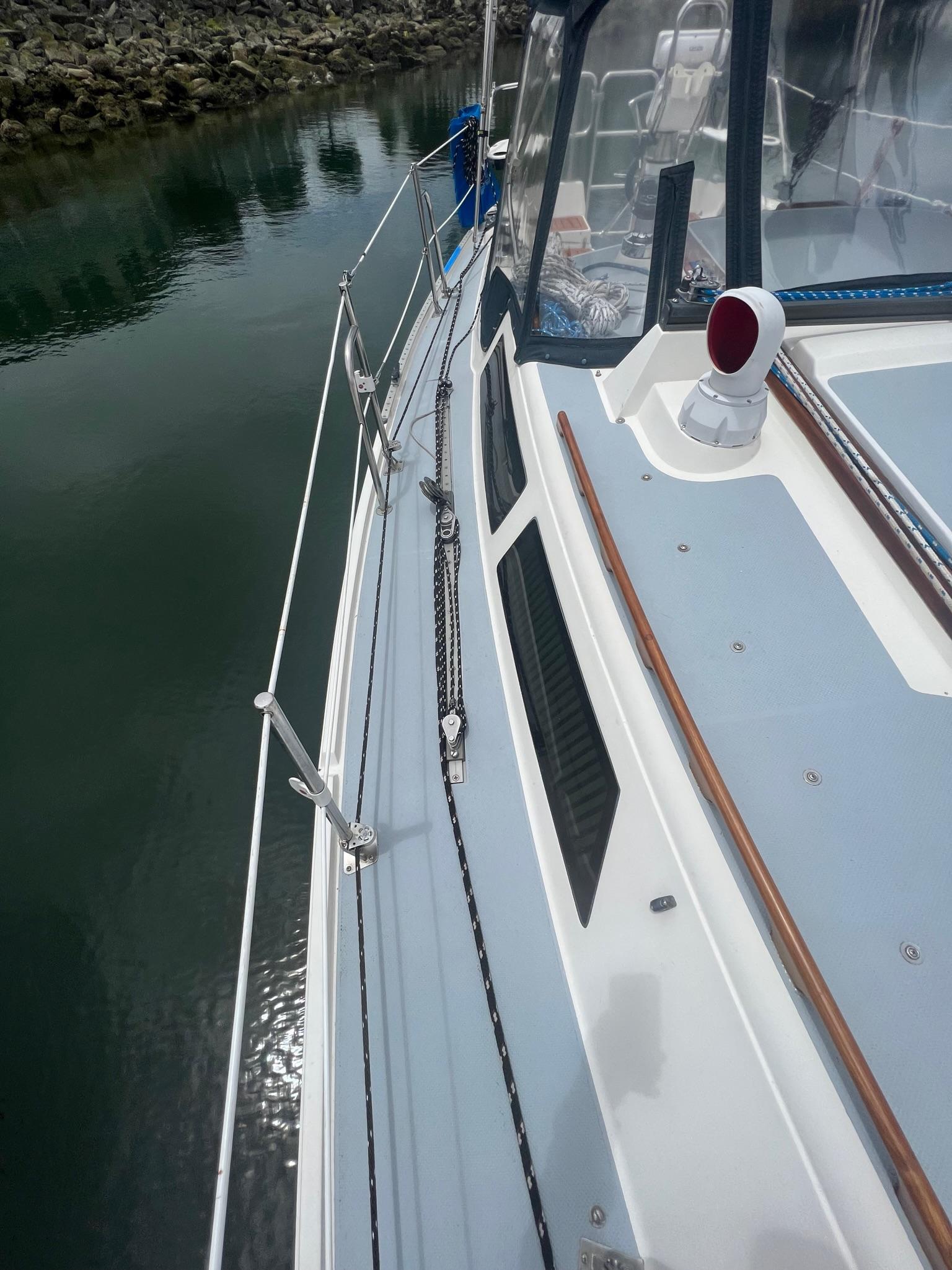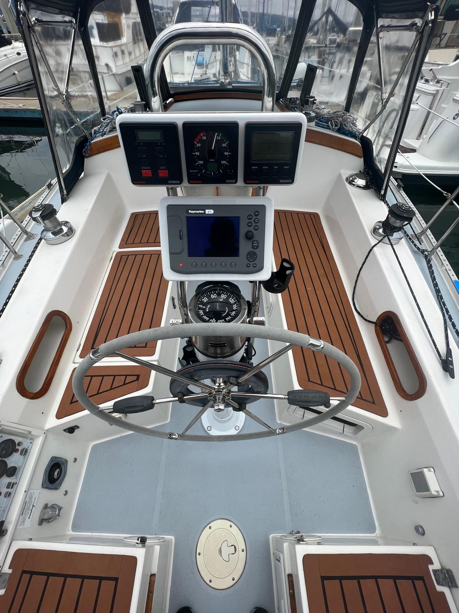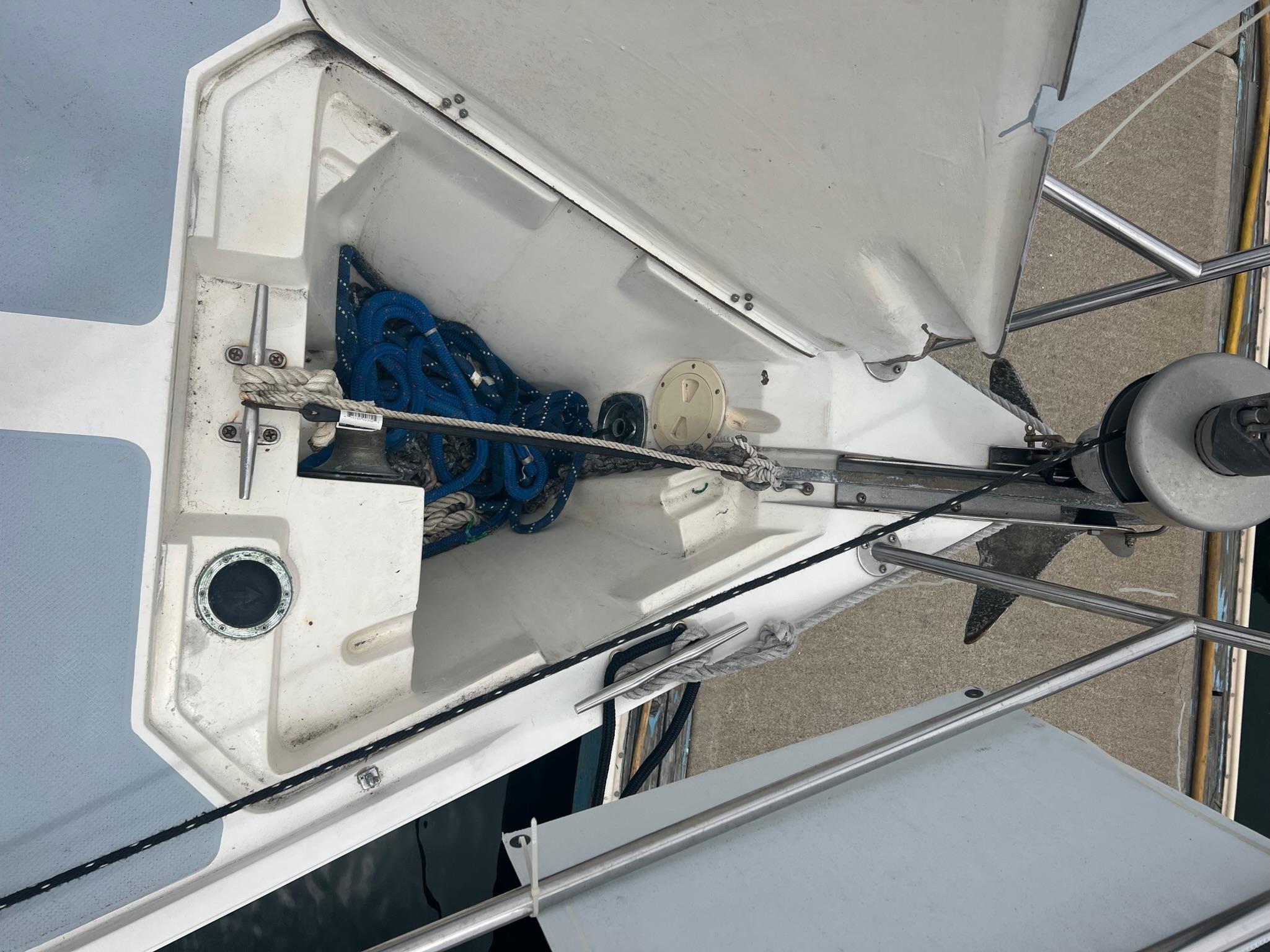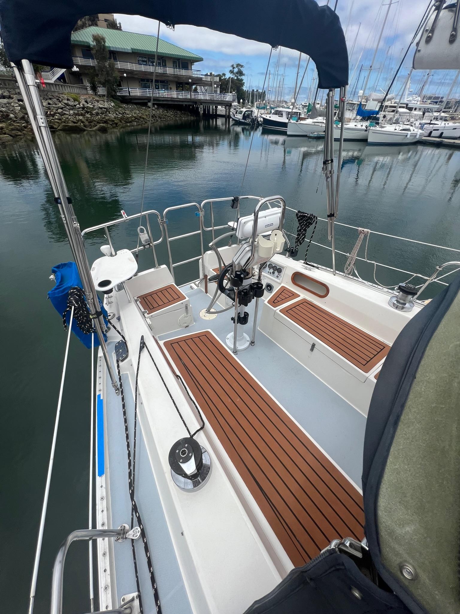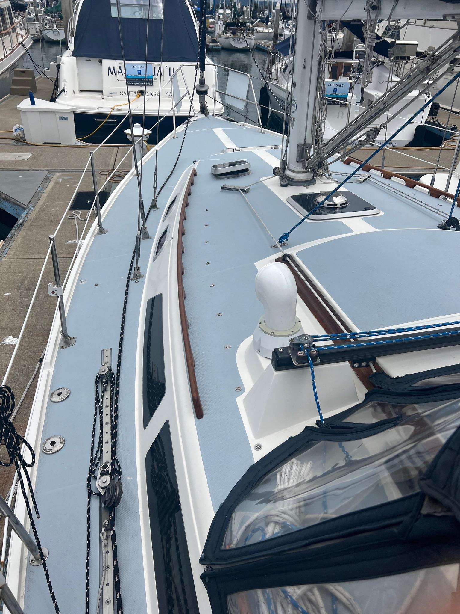 The Catalina 36 is a single spreader, anodized aluminum, sloop rig. All lines lead aft to the cockpit, and most running rigging is new.