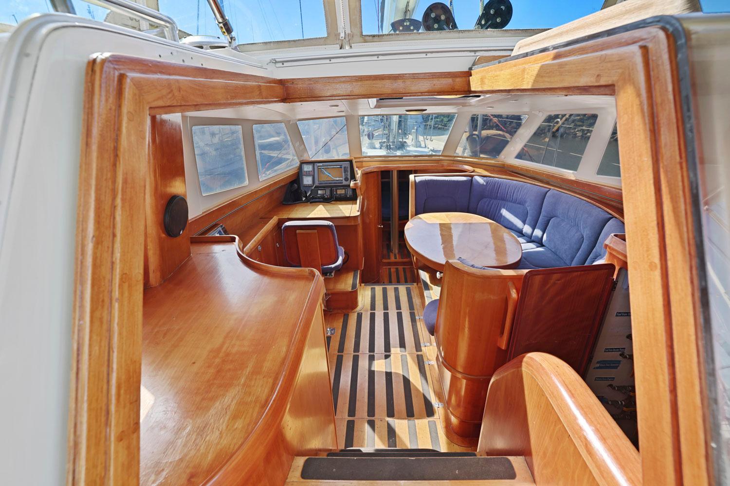 The basic idea in planning the Scandi Concept was to develop a pleasant and practical sailboat to live in under extended trips at sea. In the deckhouse one can sit indoors protected from weather and wind yet with a full view of everything that happens outside.