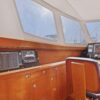 - 58″ stainless steel steering wheel, chain to cable to aft quadrant