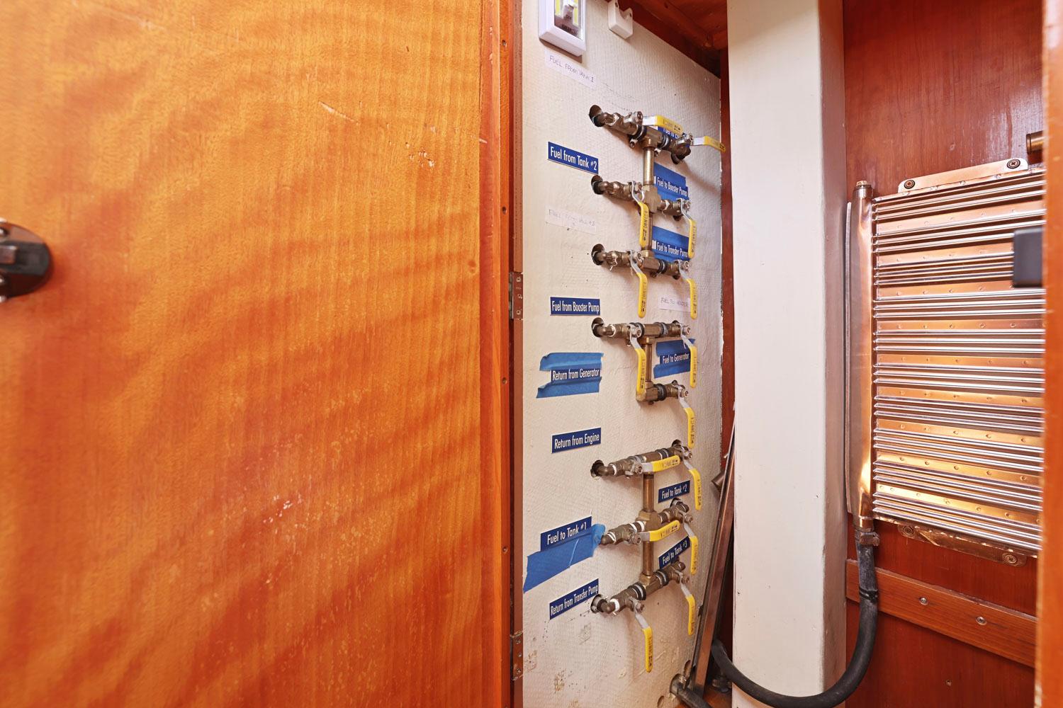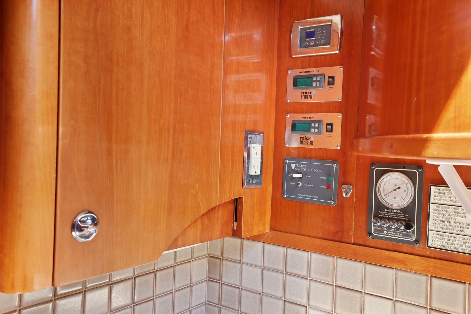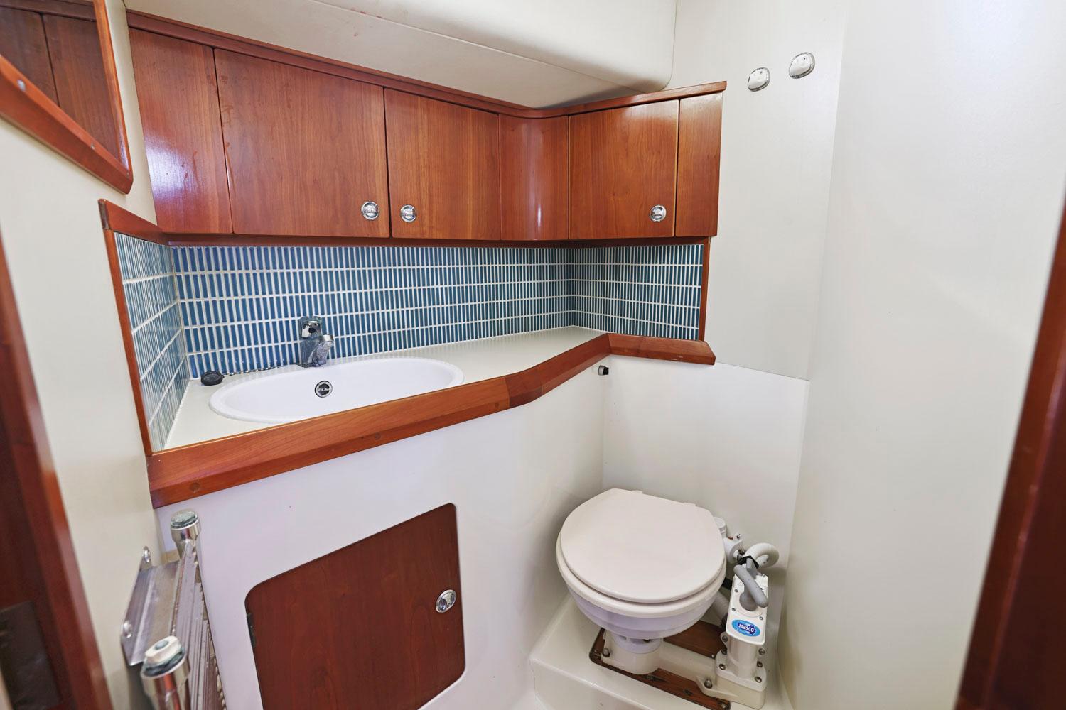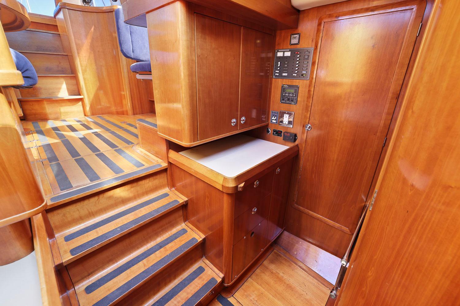 There is a lower galley to starboard. A full pantry, shelves and lockers are fitted. The refrigeration and freezer system is the efficient Glacier Bay Micro HPS system.