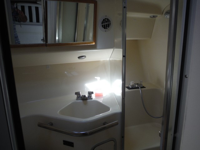 Twin 30 AMP receptacles and a Westerbeke gen-set supply ample power run twin reverse cycle AC/Heater units either at the docks or out on the water.