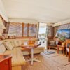 - wrap-around seating with custom burl wood table starboard aft