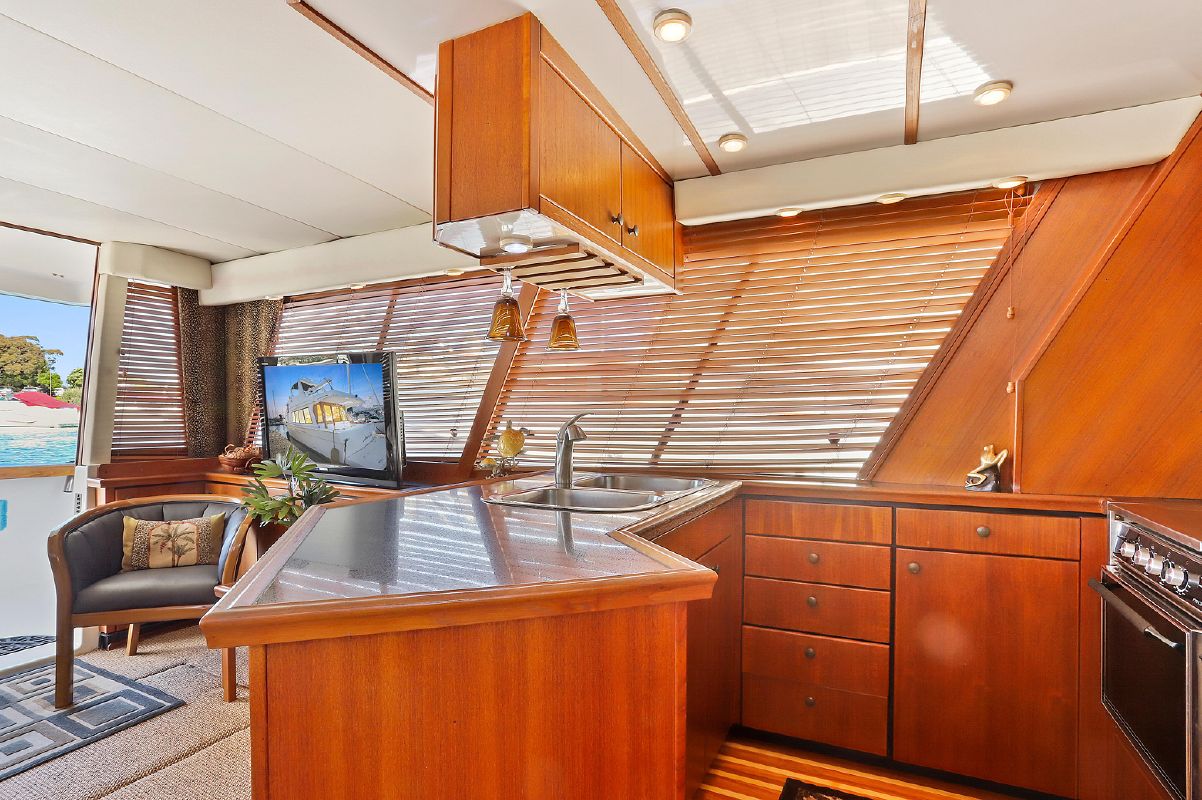 The galley is located port forward in the salon.