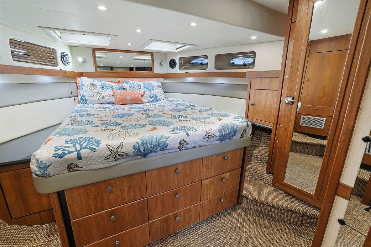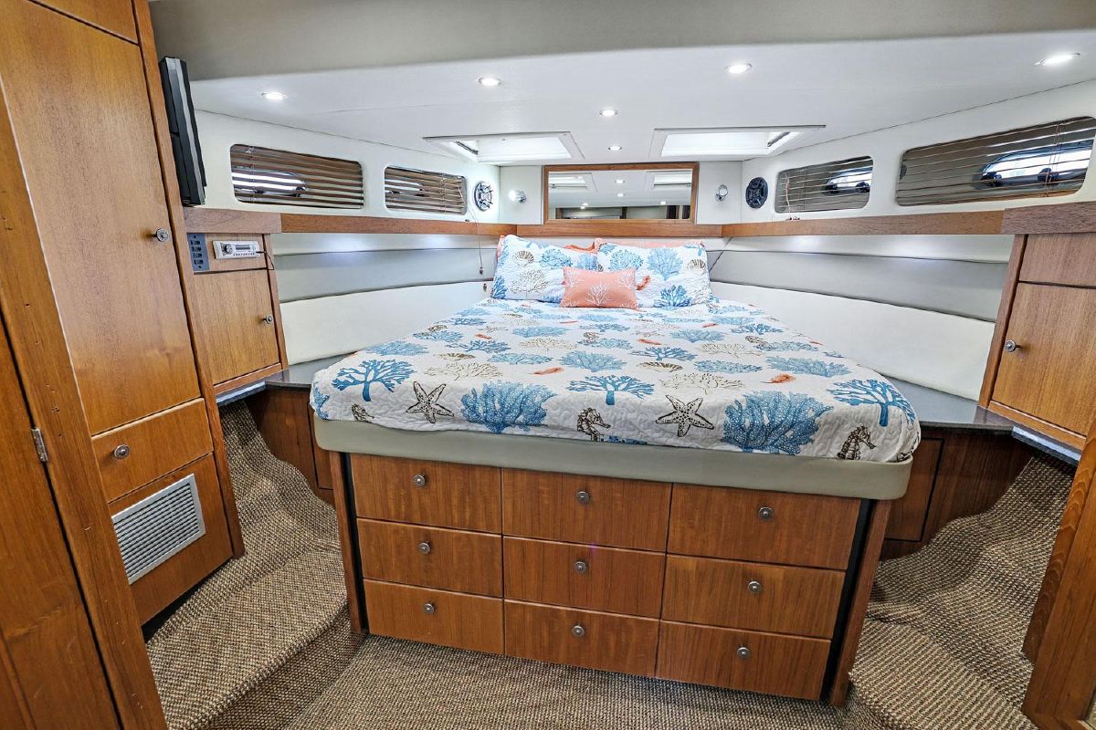 The master stateroom is forward and offers: