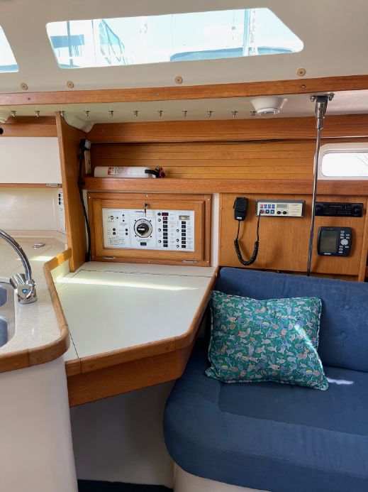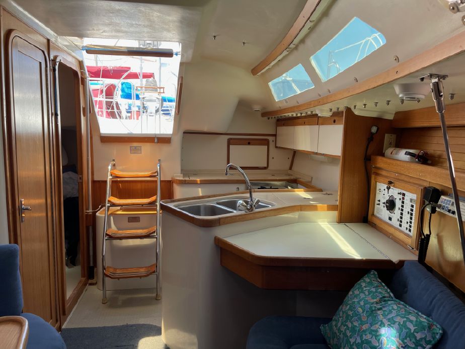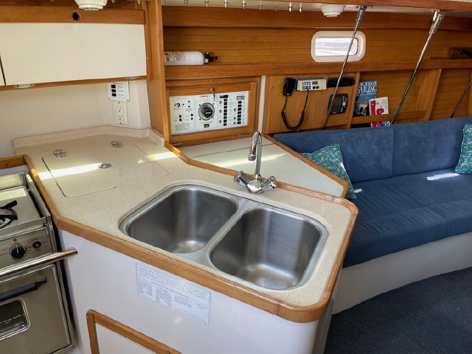 - Vinyl floor in galley and bottom of companionway steps for traction and easy clean-up