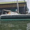 The Athena 38 is designed with a modern, yet curvaceous styling that is extremely pleasing to the eye. Due to her relatively light weight (vacuum bag construction to create a light but strong hull) she performs better in the lighter airs than most of her production counterparts. The installation of her systems and hardware has been done in such a way as to make the access and service extremely easy. Her interior has been built from low maintenance materials and modular units to allow the maximum amount of time to be spent enjoying sailing her.