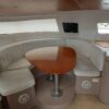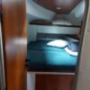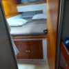 ALETA has four large double cabins with queen size berths. Each cabin has hanging lockers and abundant storage. There are two heads amidships. The galley is on the bridge deck to starboard where the activity is. The chart table is also up. There is a large u-shaped dinette to port.