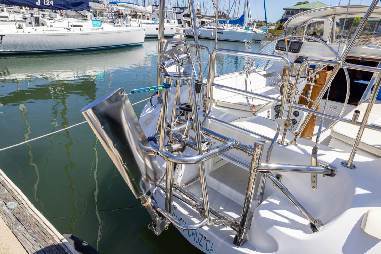 The boat is equipped with a MRUD – monitor emergency rudder/self steering. PRESS PLAY has a lot of nice features and plenty of spare parts. Contact Geli for additional information.