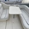 The cockpit is entered via the wide swim step, at the stern you will find a bench seat facing forward. There is a lounger to port and the wide helm seat to starboard backed with a seat facing the stern bench. The table can be positioned here. There is a pull out hand held shower with hot/cold pressurized water.
