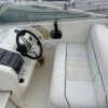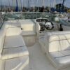 The windshield opens in the center to allow access to the foredeck which is surrounded by stainless steels rails. There is an anchor locker and roller at the bow.