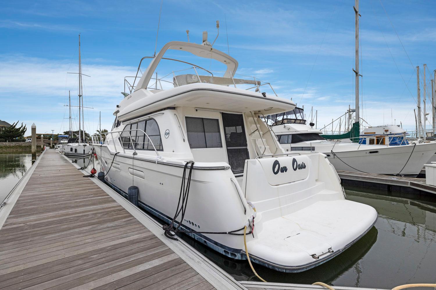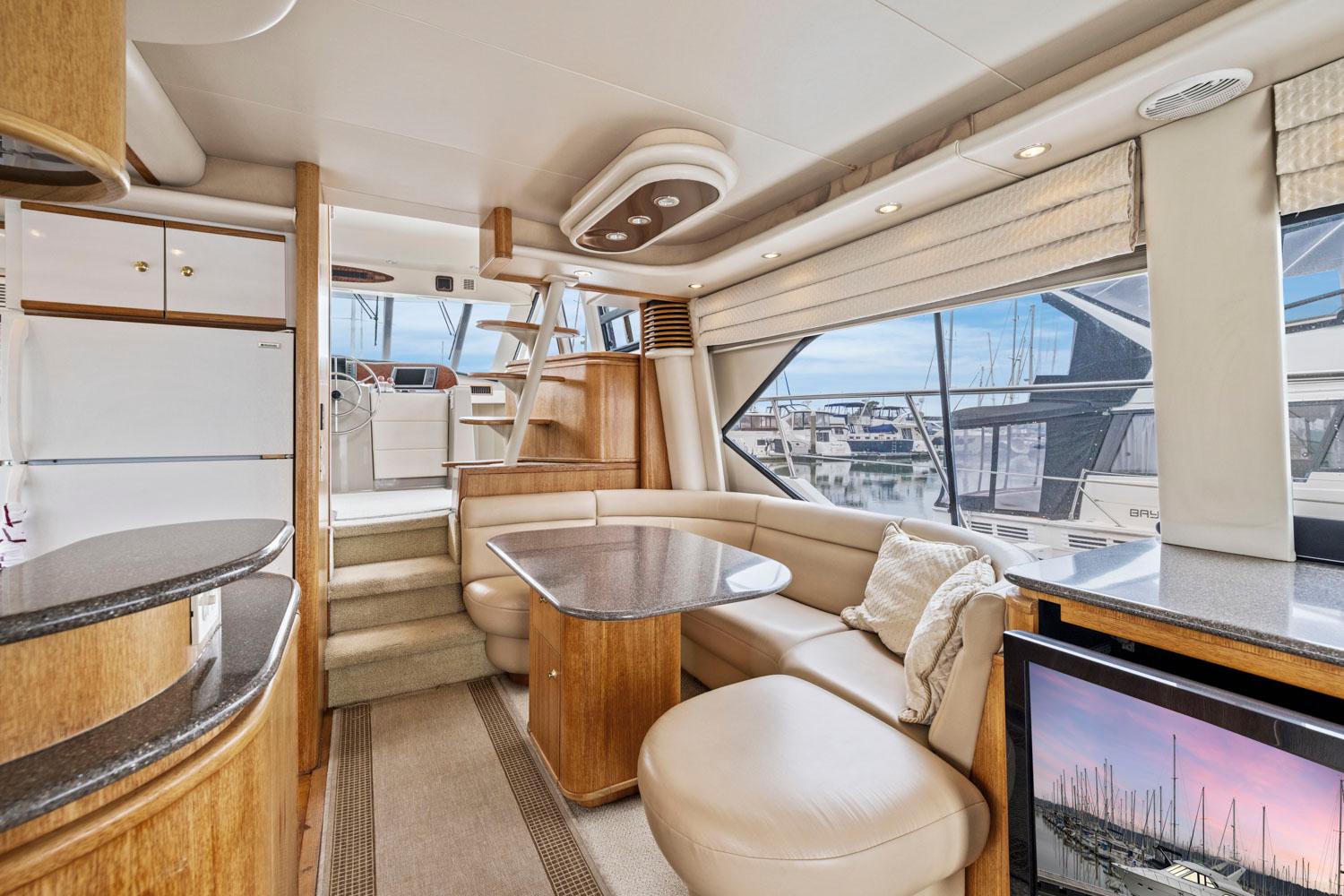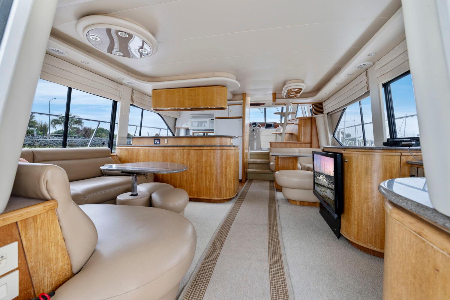 OUR OASIS, a 1998 5788 Bayliner Raised Pilothouse Motor Yacht is ready for her new owners. She features a three stateroom, two head layout with a galley that is located just off the main salon.