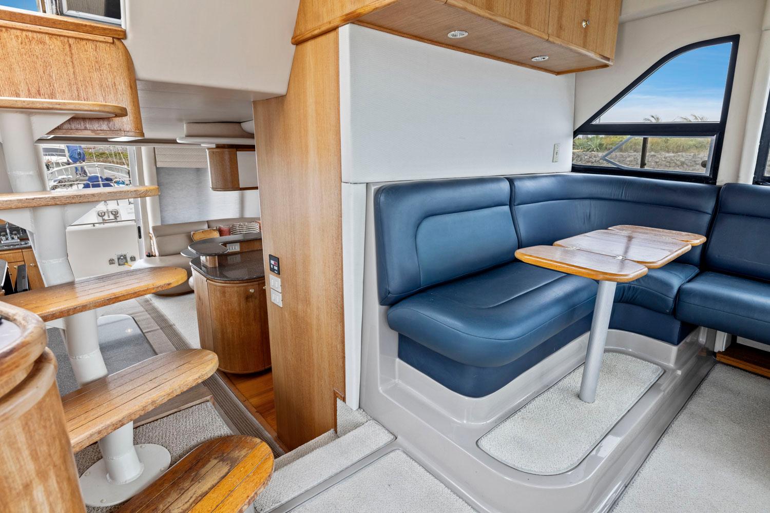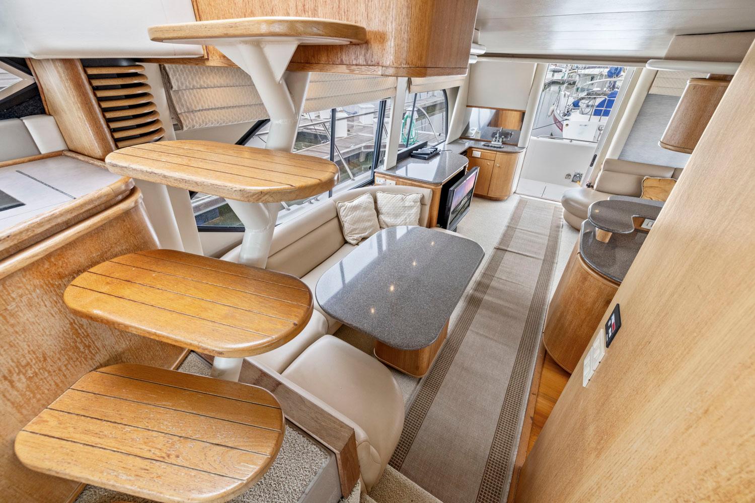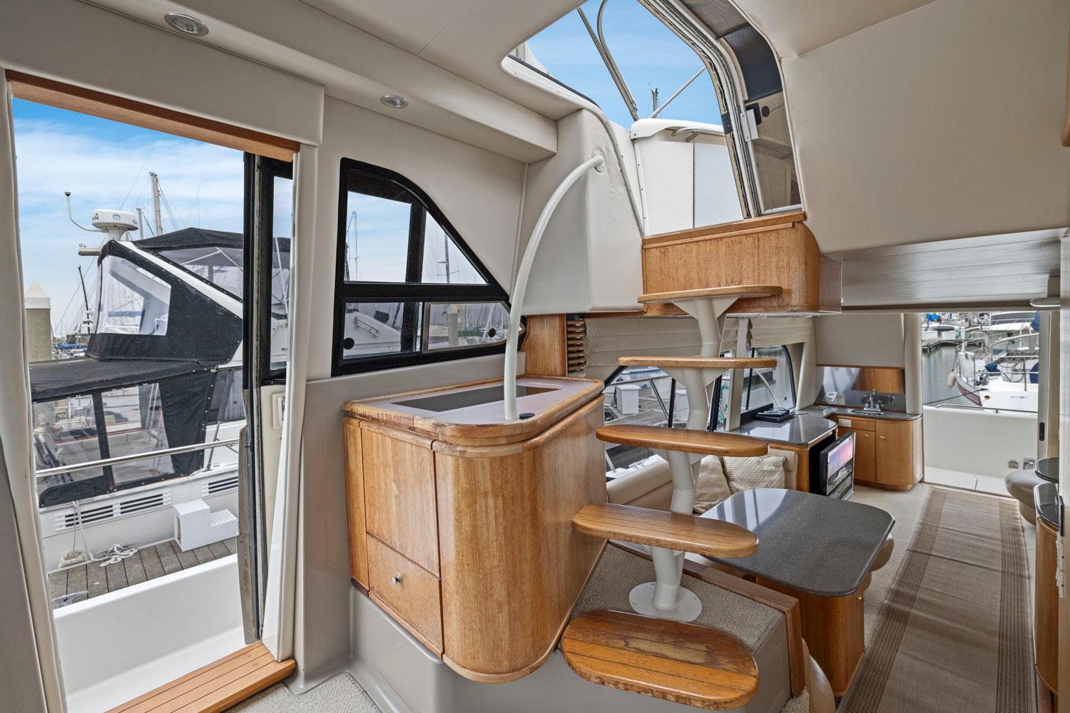 OUR OASIS, a 1998 5788 Bayliner Raised Pilothouse Motor Yacht is ready for her new owners. She features a three stateroom, two head layout with a galley that is located just off the main salon.