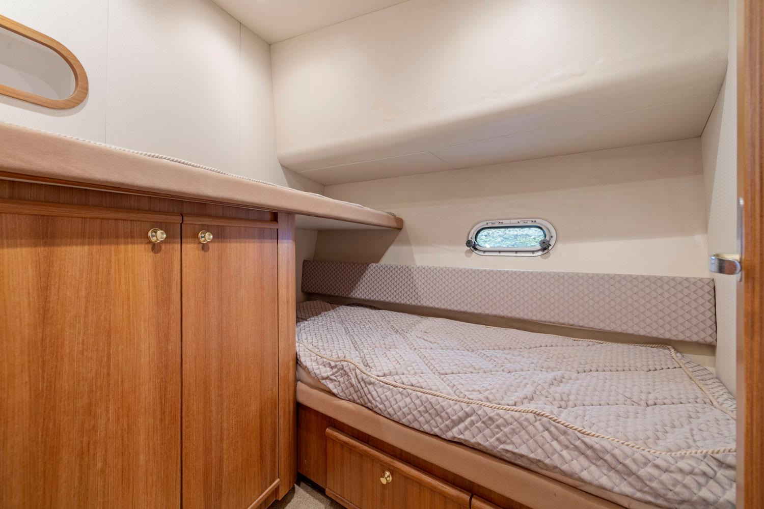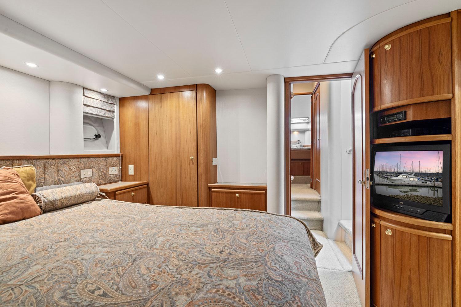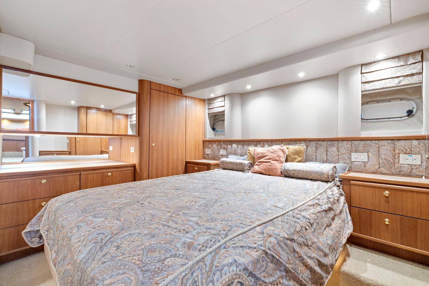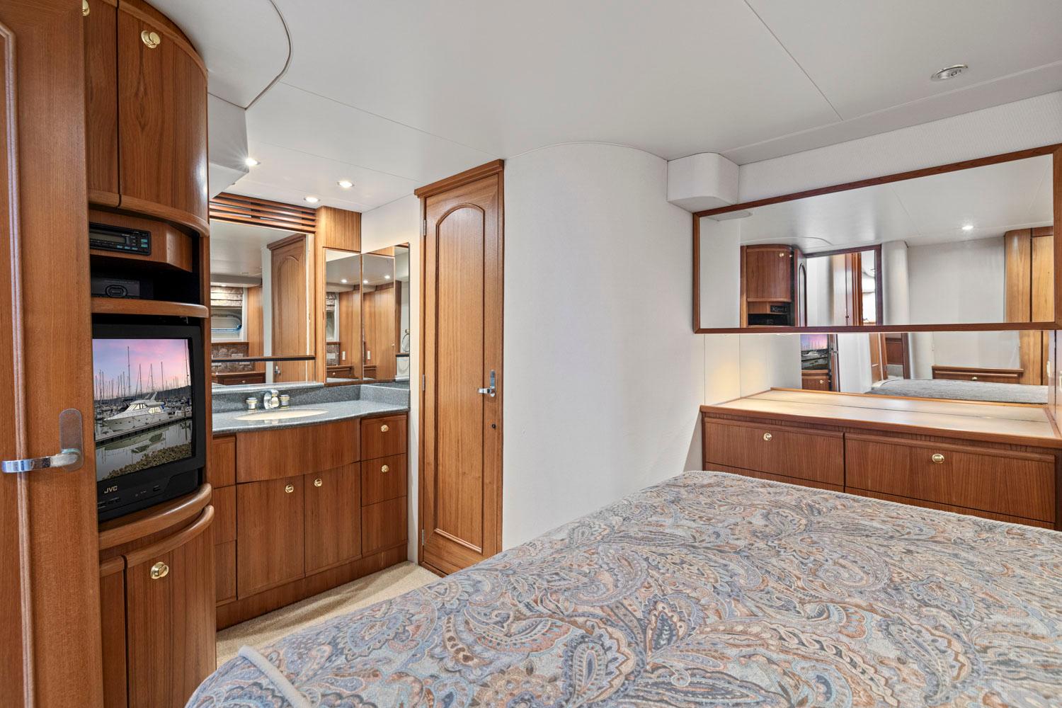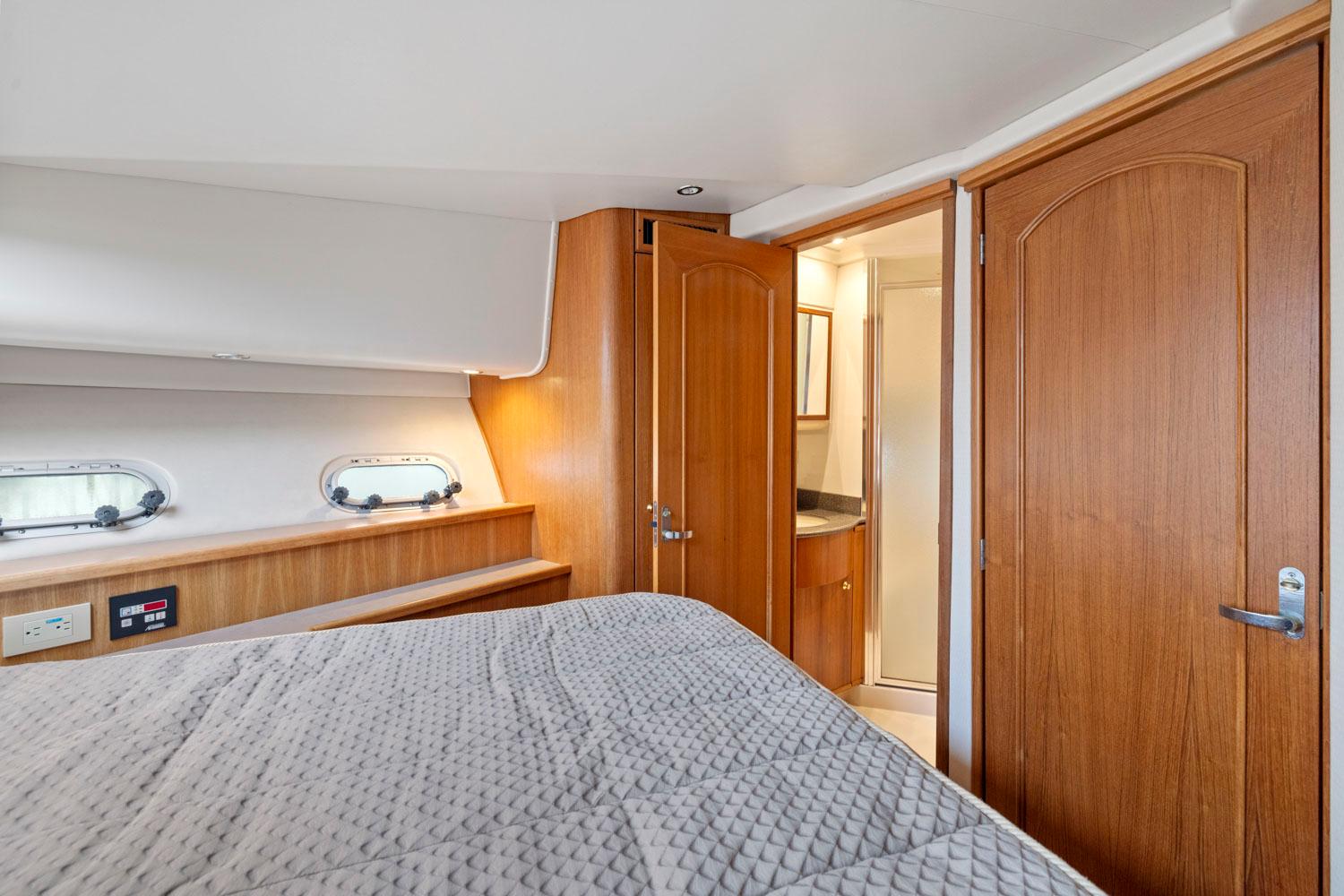 Luxurious accommodations in three private staterooms each with easy access to head compartments.. Each featuring abundant storage in lockers and drawers. Rich and warm wood paneling and trim.