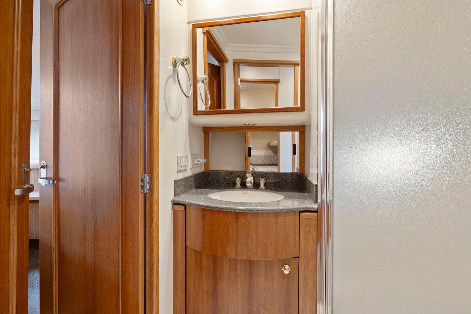 The 800 gallon tankage brings distant cruise destinations within reach. Attention to detail and premium materials used throughout including solid surface countertops.