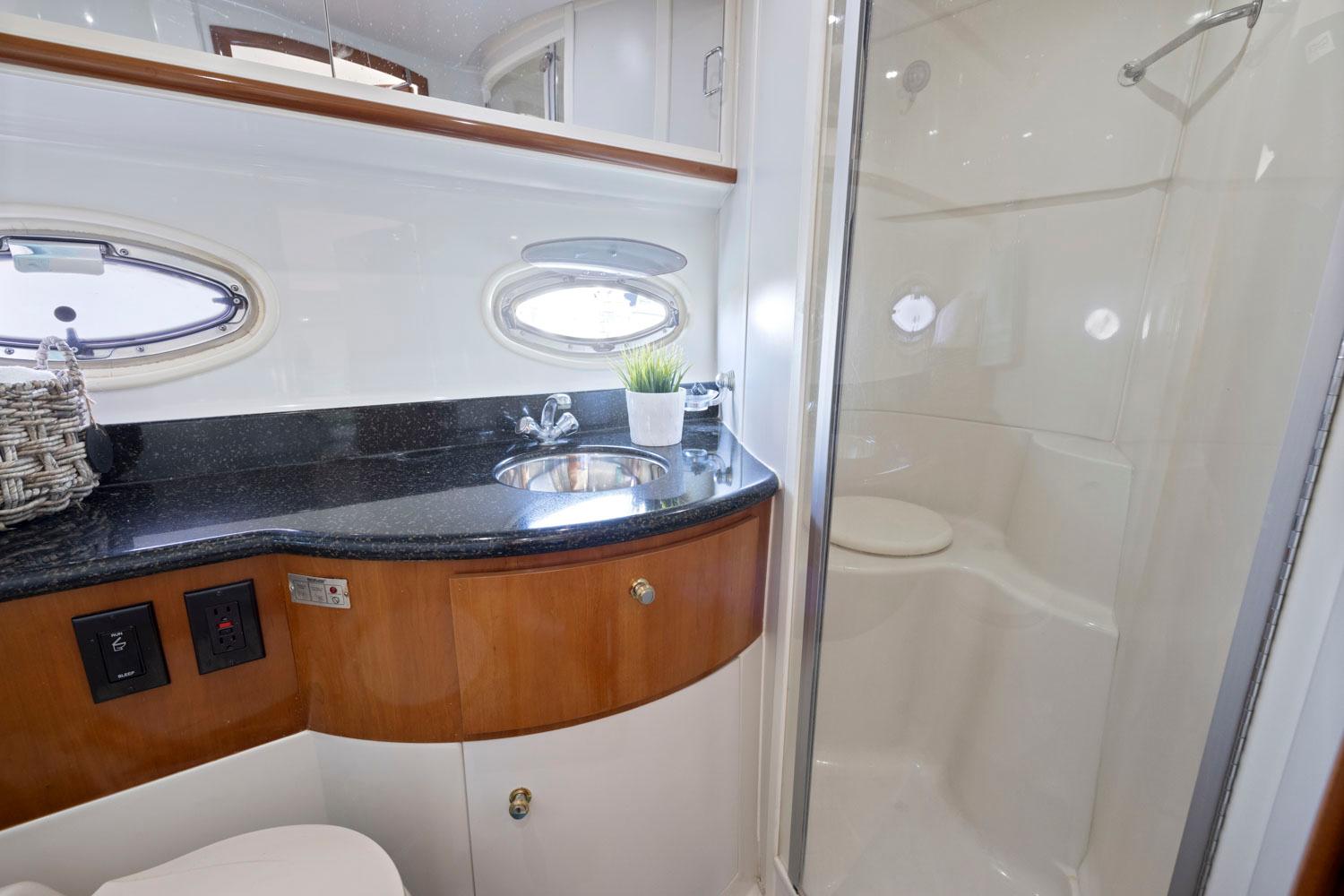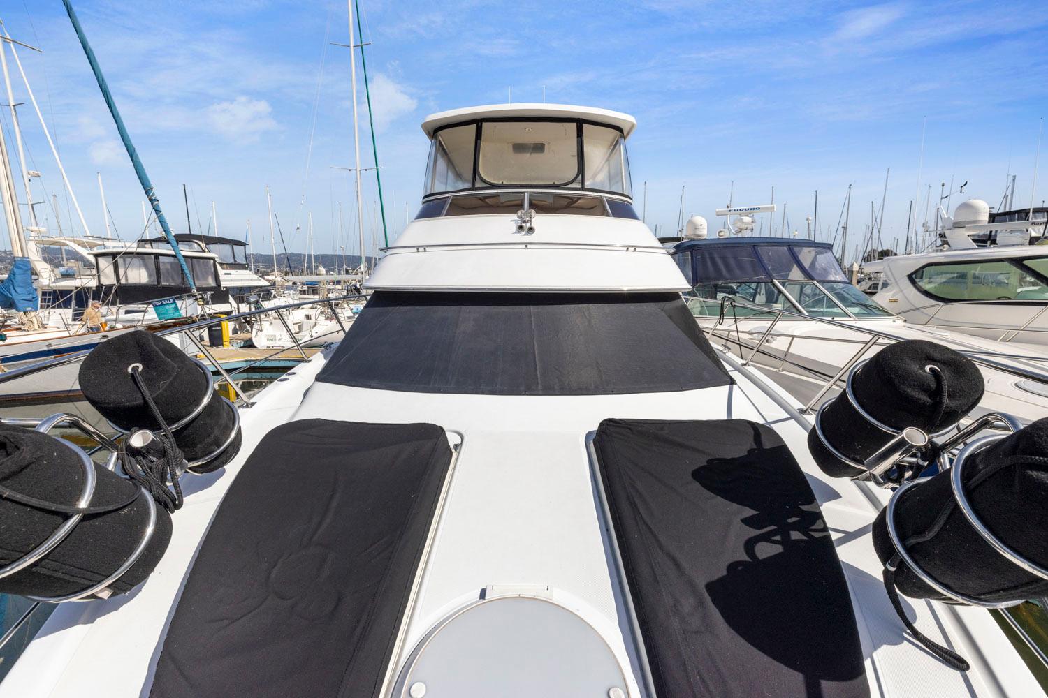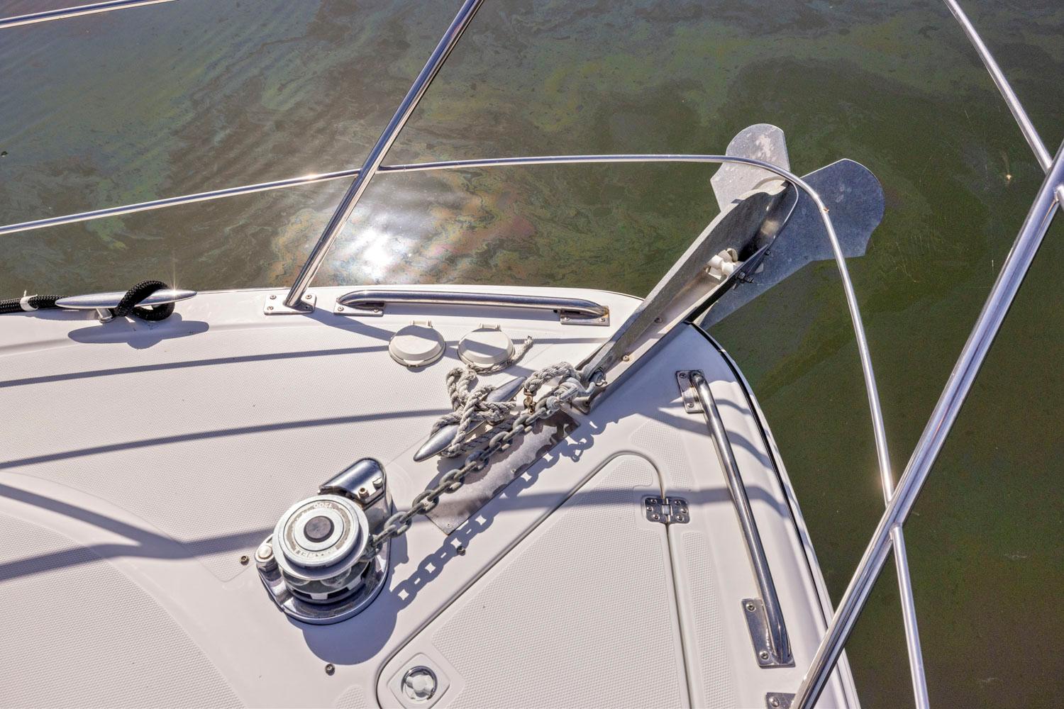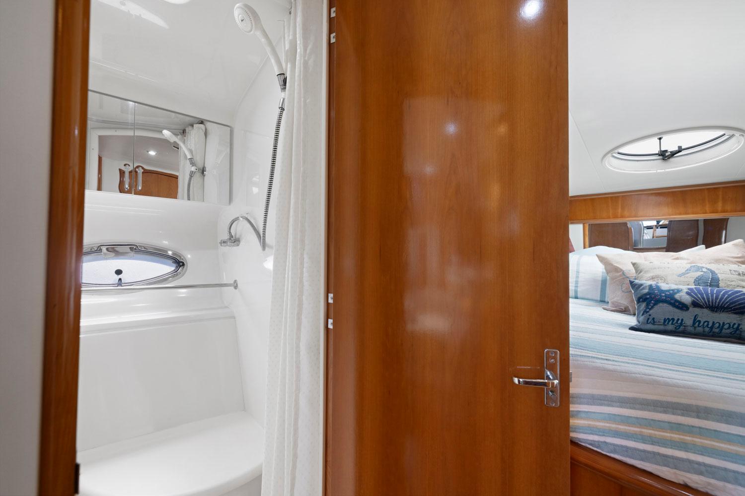The flybridge is a standout feature of the Carver 444, offering panoramic views and plenty of seating for guests. With its fully equipped, updated, helm station and ample space for lounging, the flybridge is the perfect spot to enjoy the open water.
