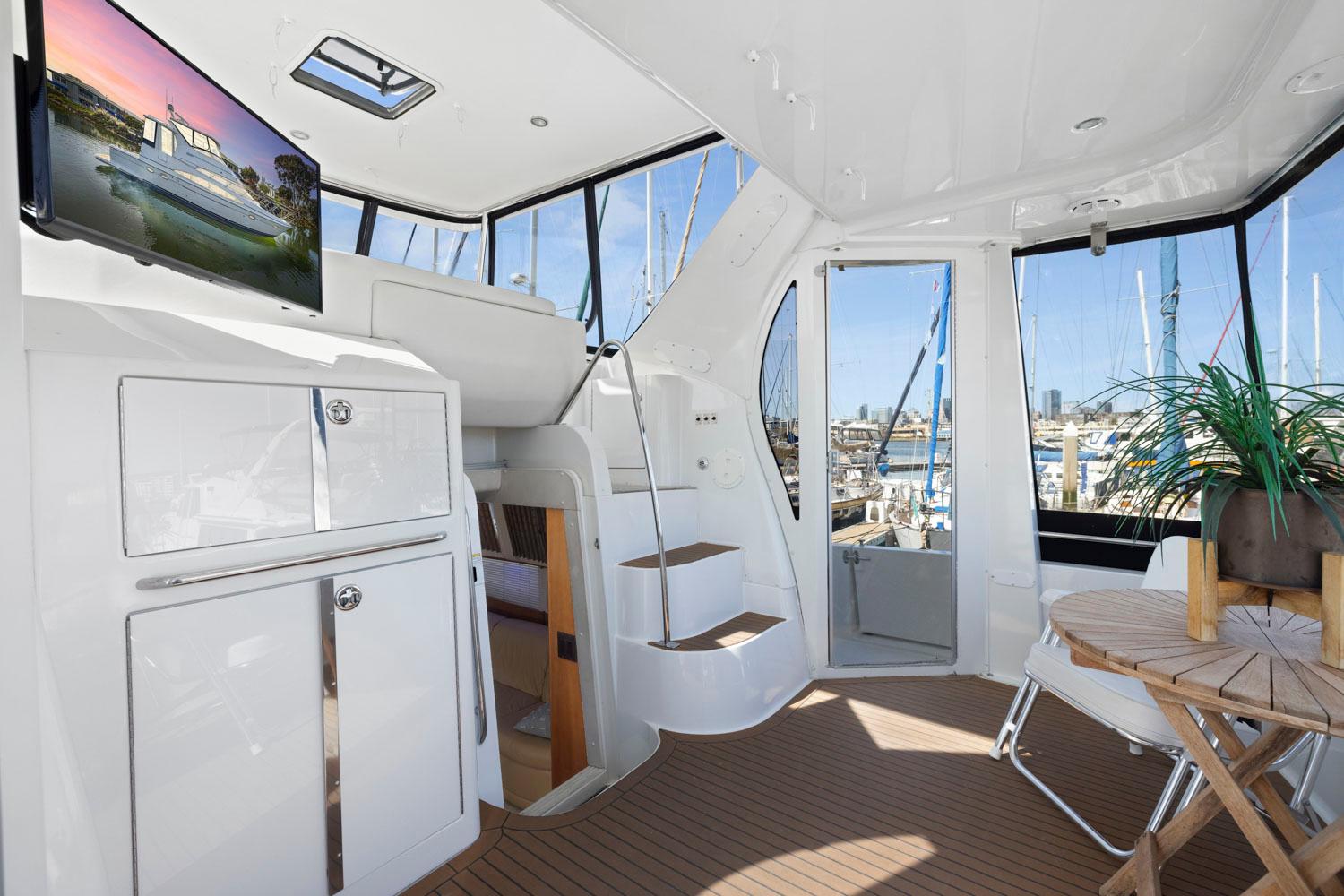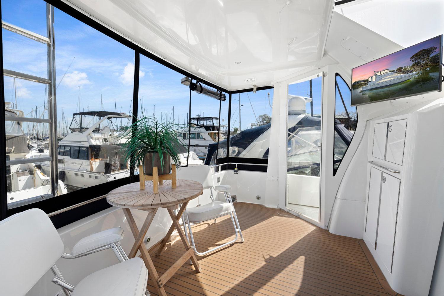 - Fully Enclosed Fly Bridge with a Custom Hard-Top,