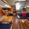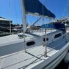 The rig is a single spreader conventional, keel-stepped mast. Aft of the mast is medium sized opening hatch over the main salon. There are four opening ports and four fixed windows in the cabin house sides. A stainless-steel grab rail runs the length of the cabin on both sides. There are boarding gates in her double lifelines to port and starboard of the forward end of the cockpit.