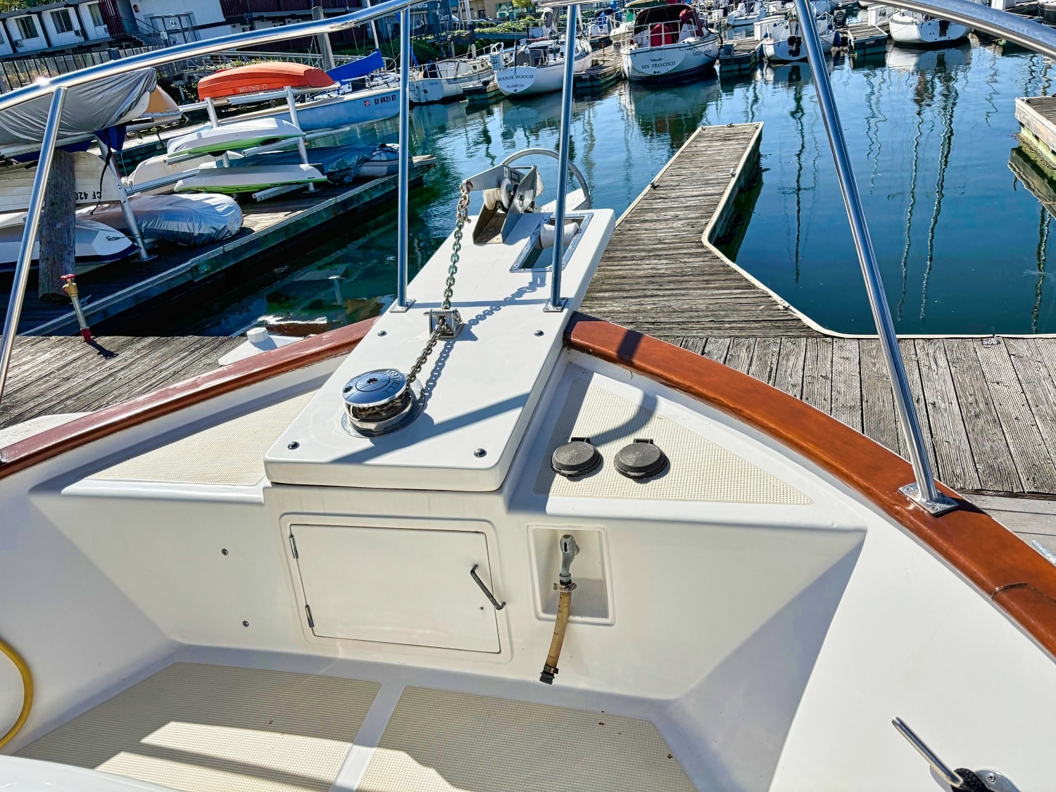 The exterior full walk-around decks are fiberglass and the upper handrails are stainless which means more time boating and less time on maintenance.