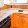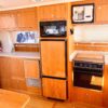 The L-shaped galley, situated along the port side of the main salon, offers a functional and well-equipped space for meal preparation and entertaining.