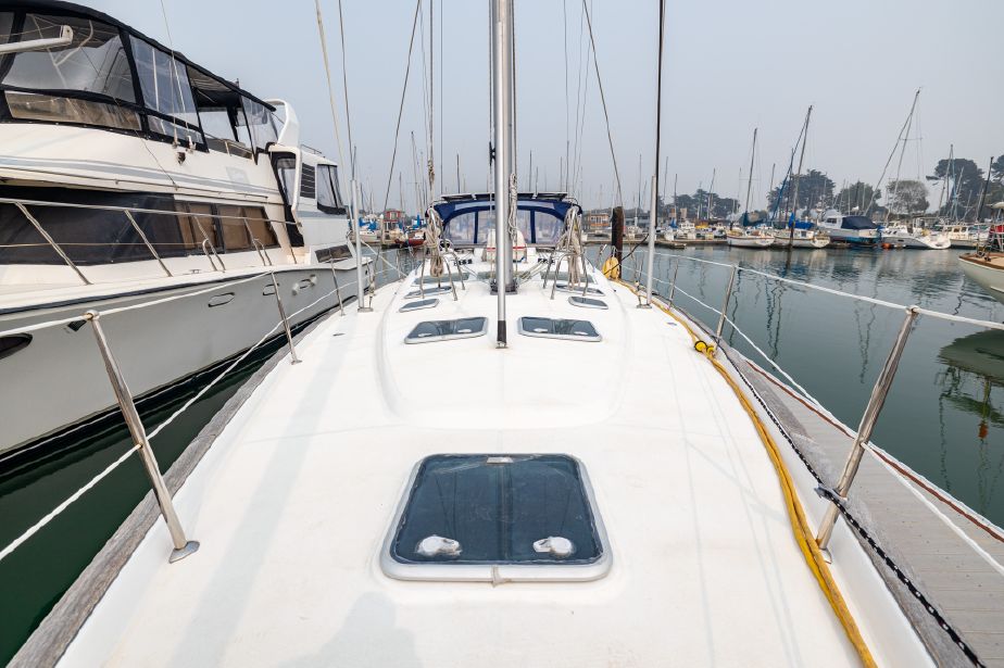 TERRE’O is a well equipped three stateroom racer/cruiser. She’s outfitted with solar panels, bow thruster, generator, heat, air conditioning, life raft, and much more. She is spacious down below three staterooms, ample light and 6’8″ headroom. Her cherry wood and white leather interior makes it an inviting place to both relax and entertain.
