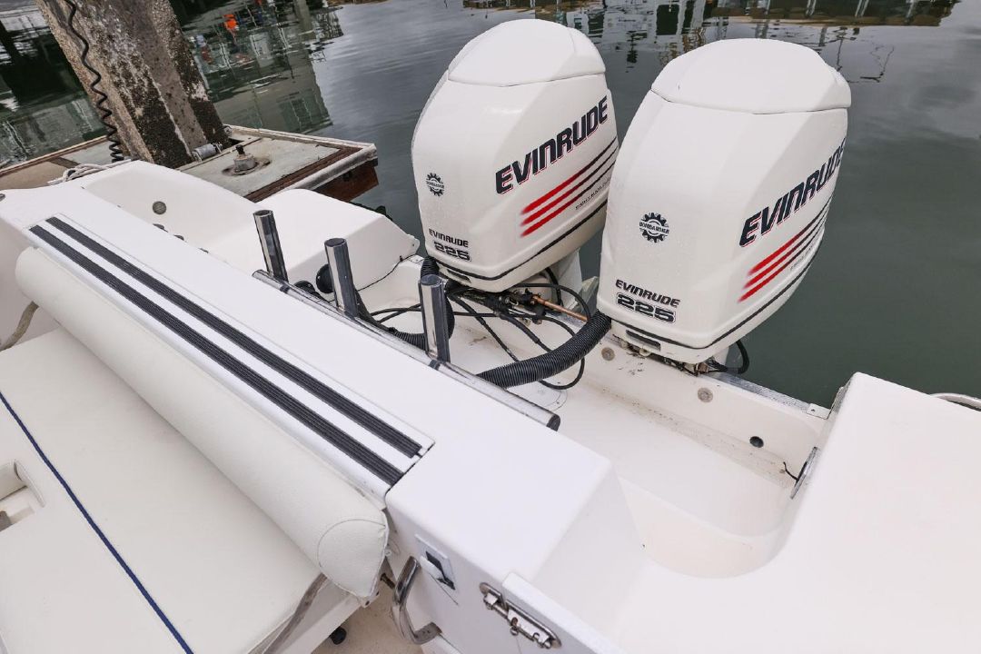 Twin 2002 Evinrude FICHT 225s . Engines were completely overhauled at 800 hours and have had regular seasonal maintenance. Hours are primarily trolling.