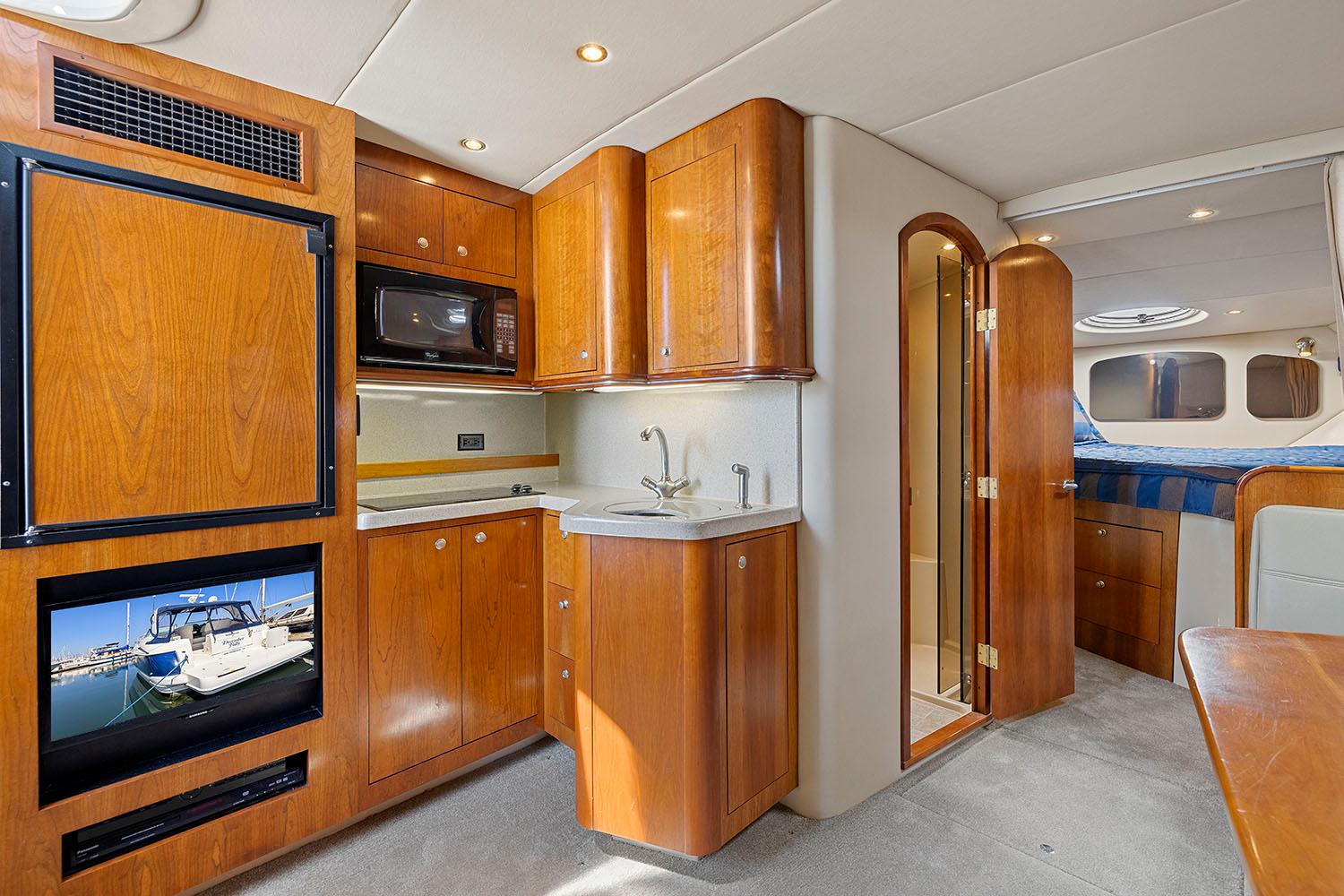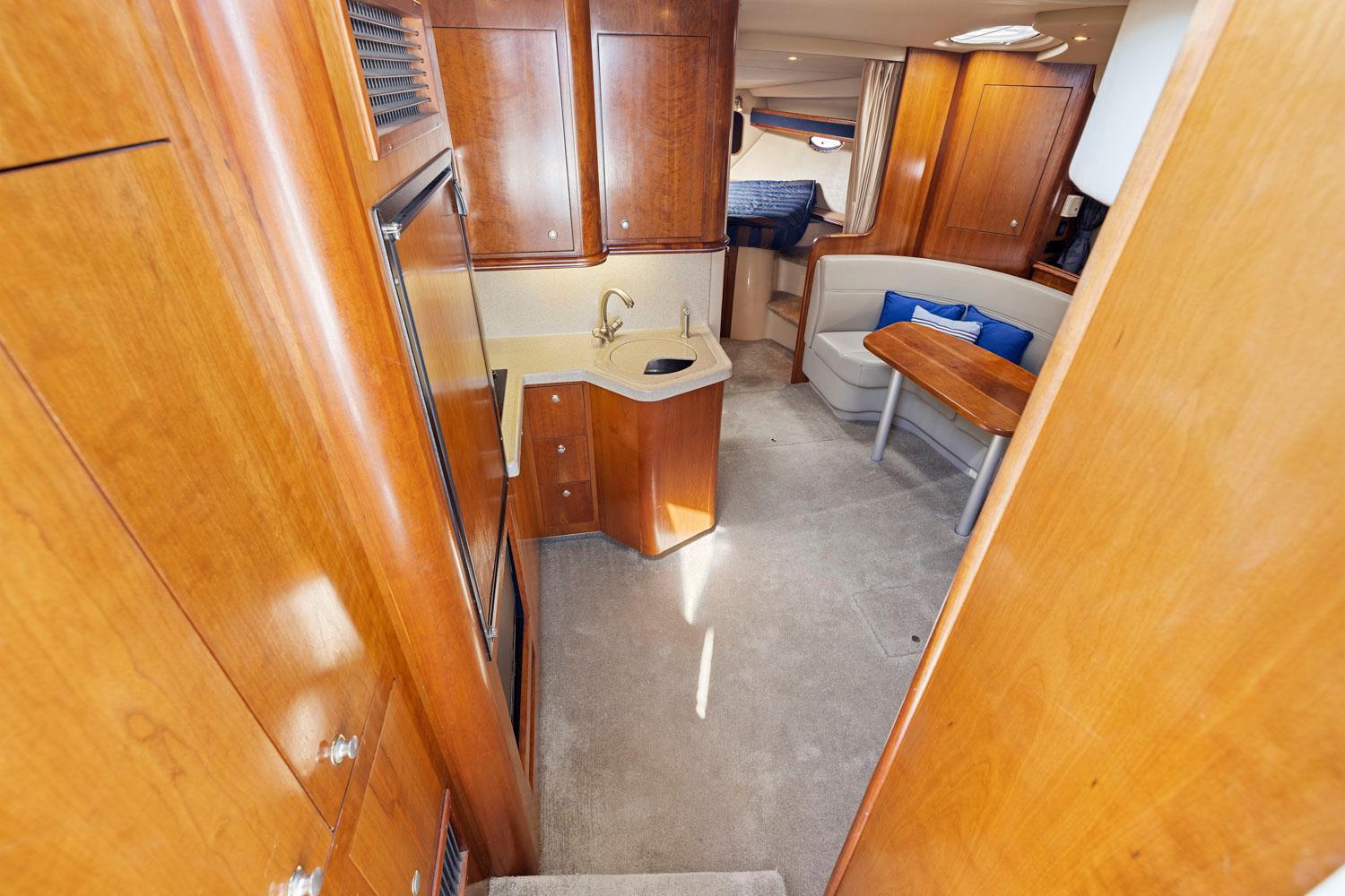 - Easy access in and out of berth Cheery wood cabinetry
