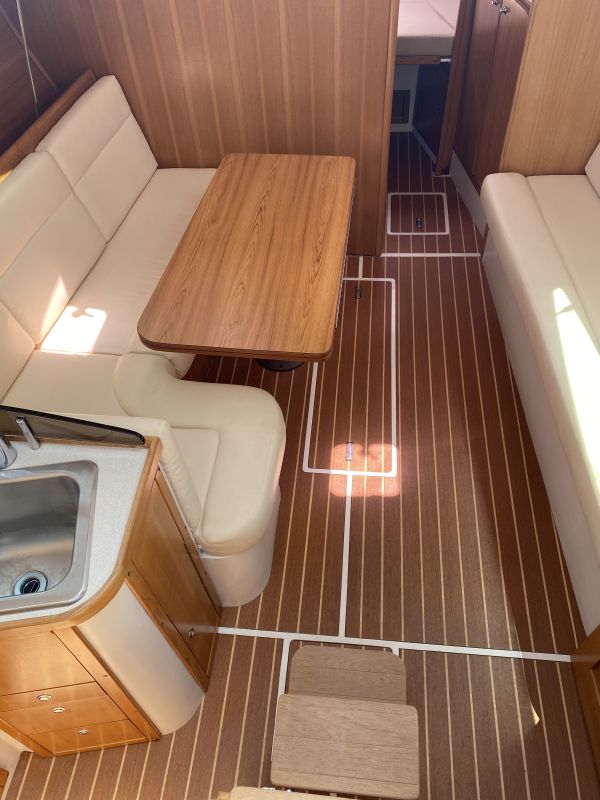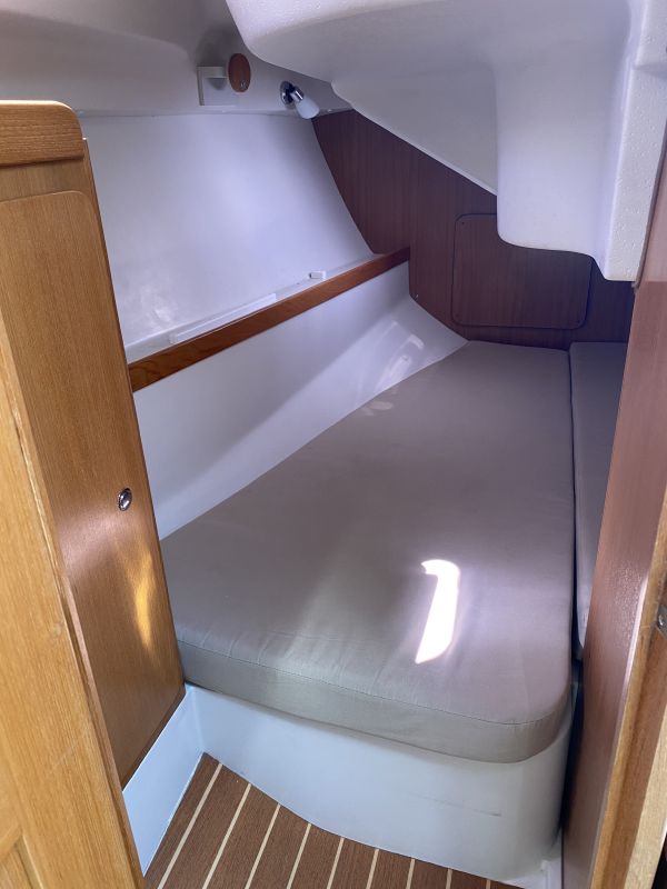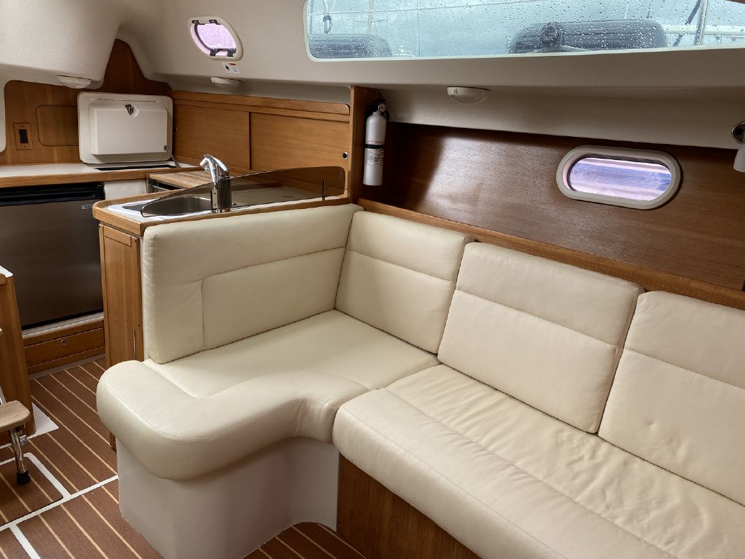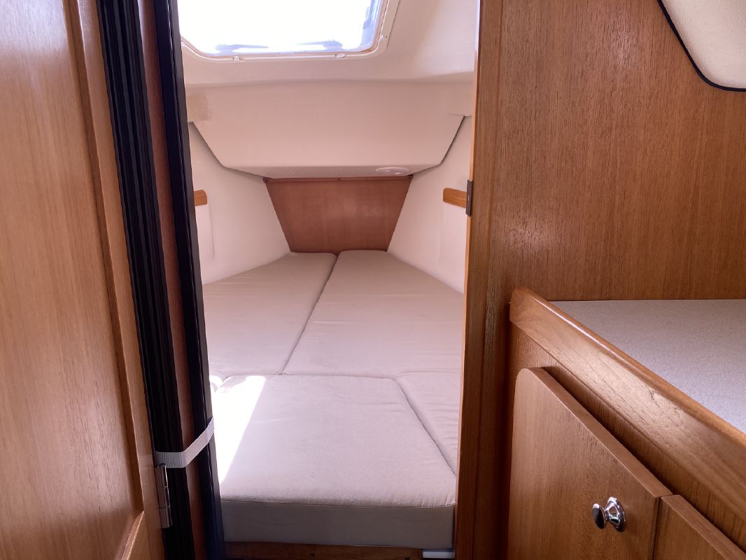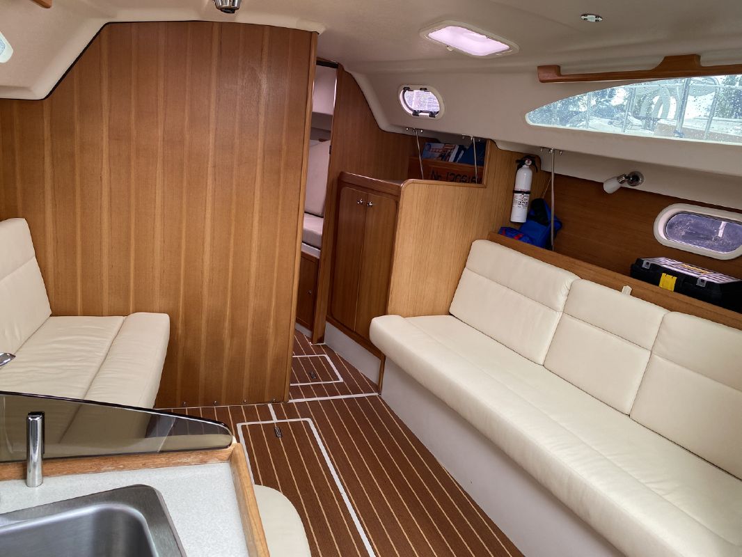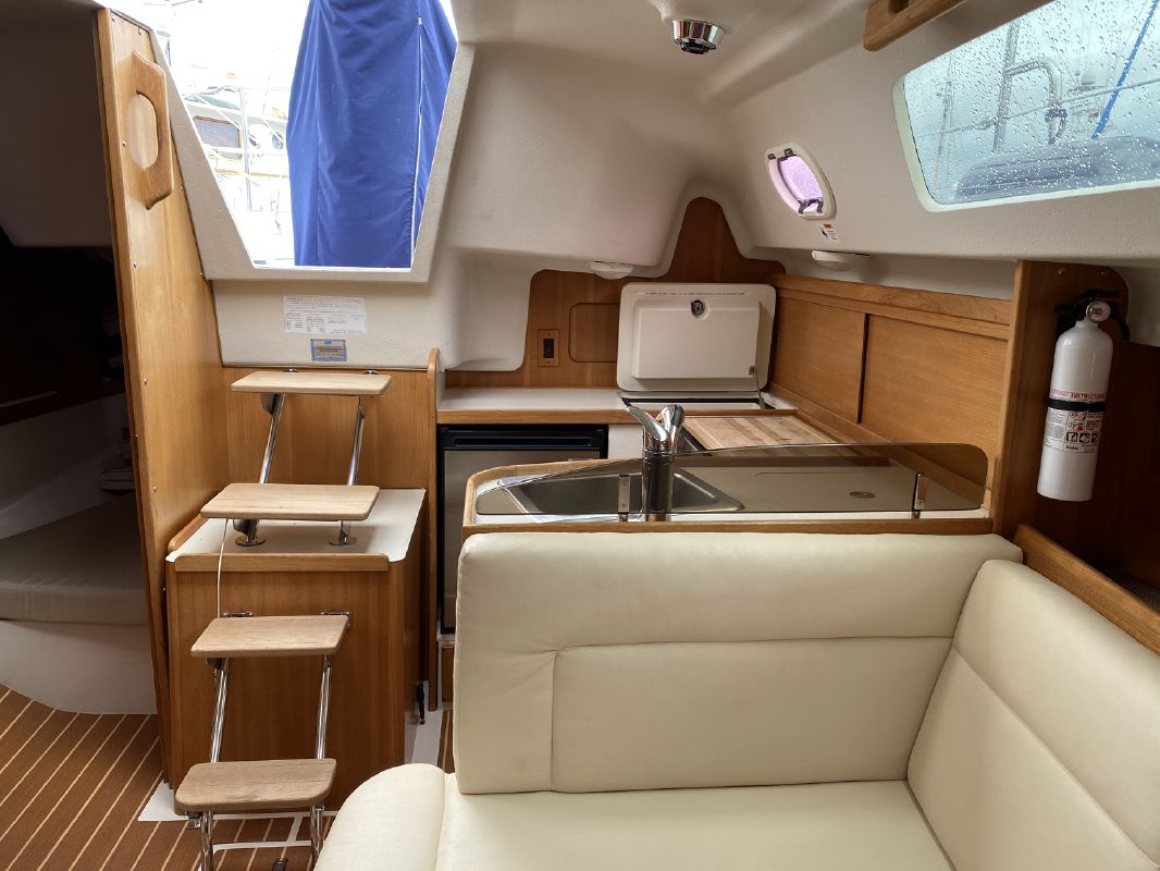 Small but mighty! This Catalina 309 with 6ft 2in keel is a great Bay boat! Easy to single hand or double hand – with room for the family. The removable table in the salon makes the interior feel open. The white leatherette, which is in very good condition, keeps it bright.