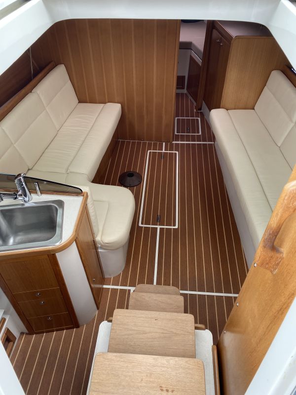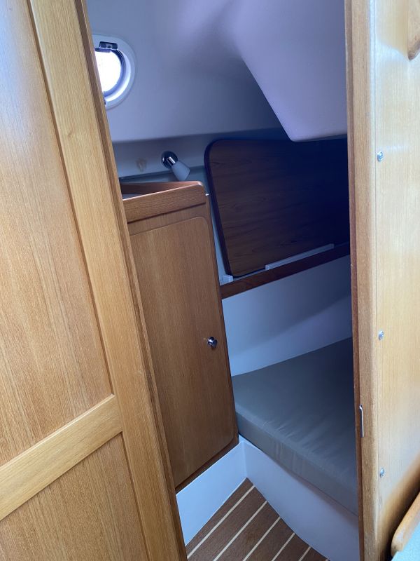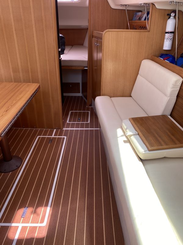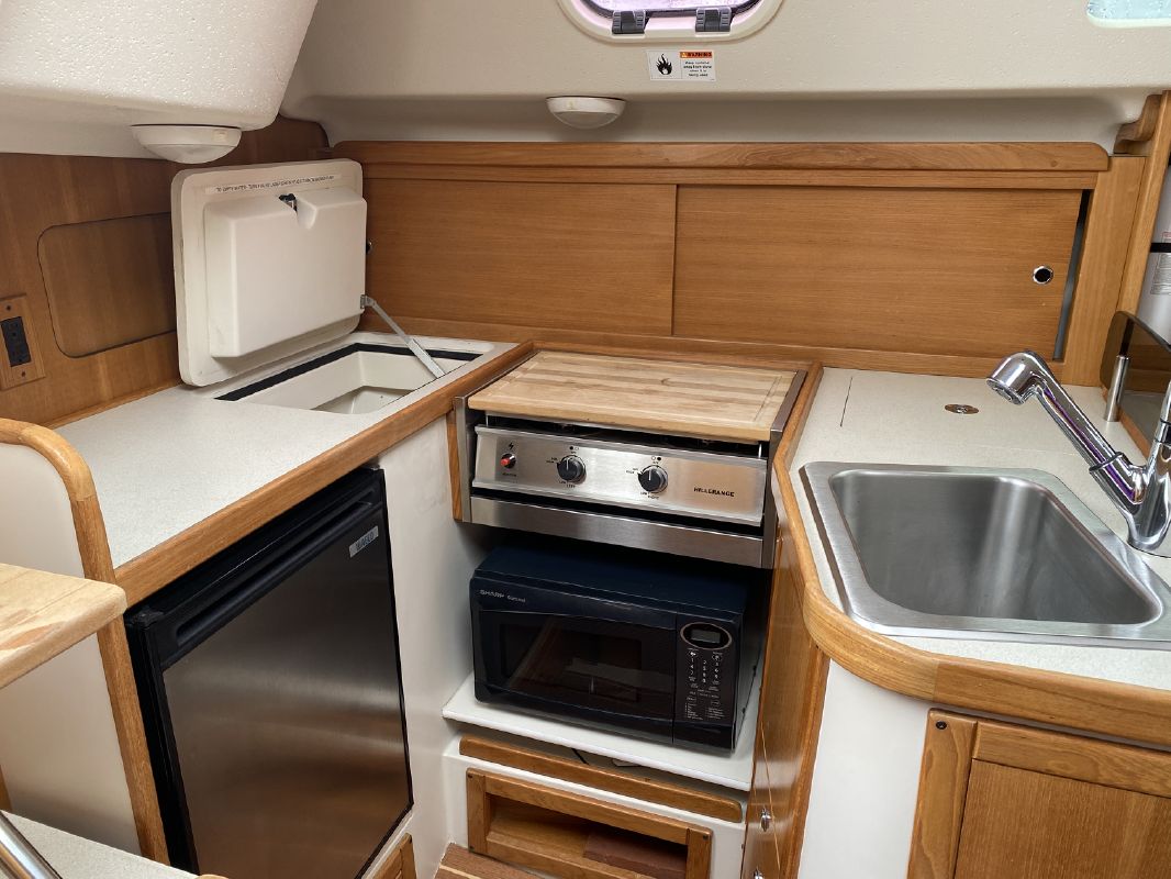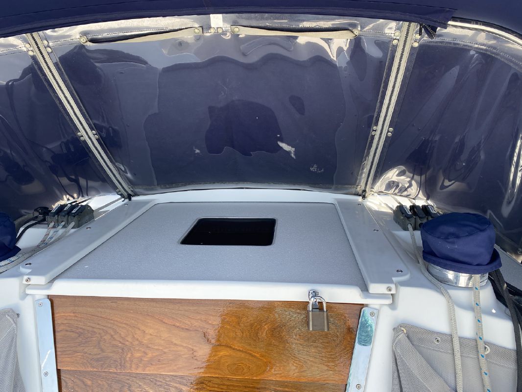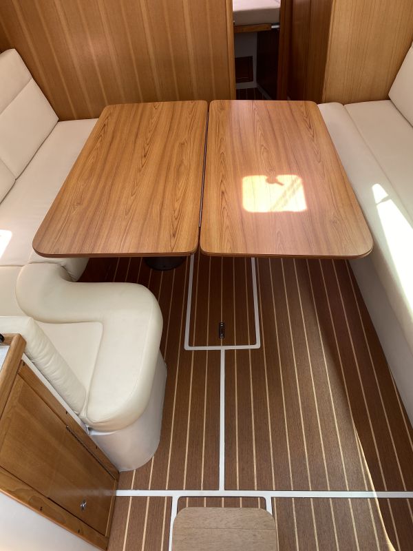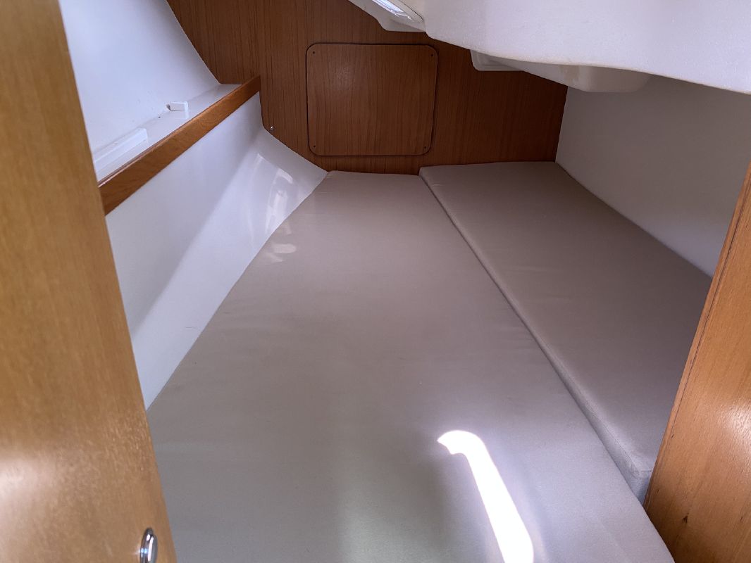 Small but mighty! This Catalina 309 with 6ft 2in keel is a great Bay boat! Easy to single hand or double hand – with room for the family. The removable table in the salon makes the interior feel open. The white leatherette, which is in very good condition, keeps it bright.