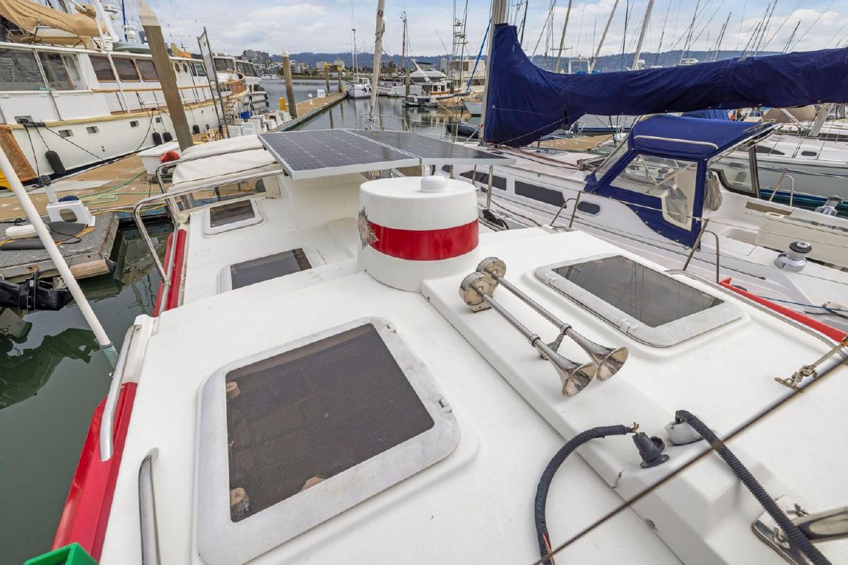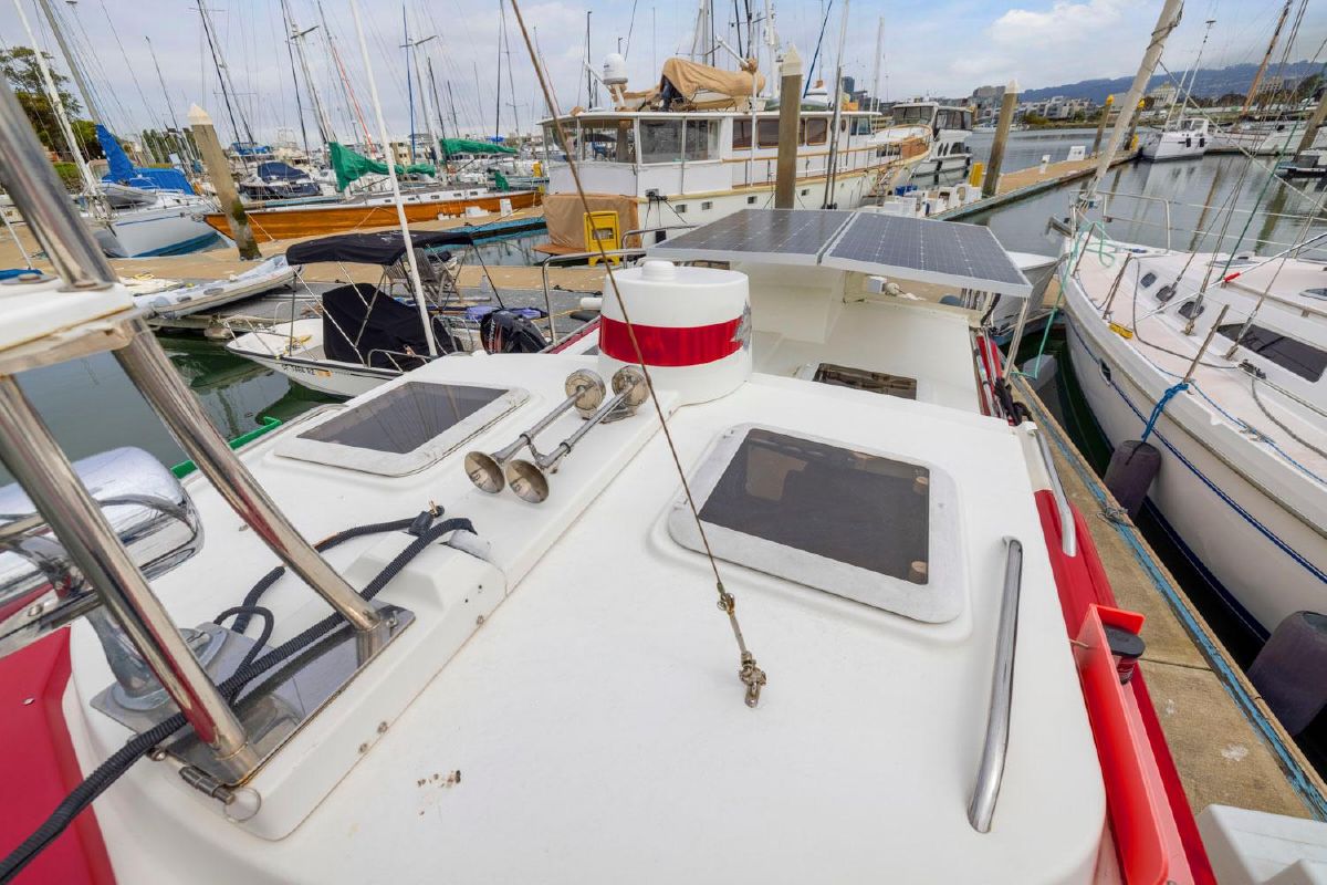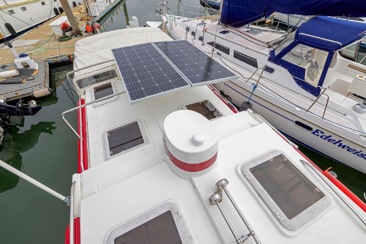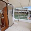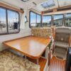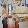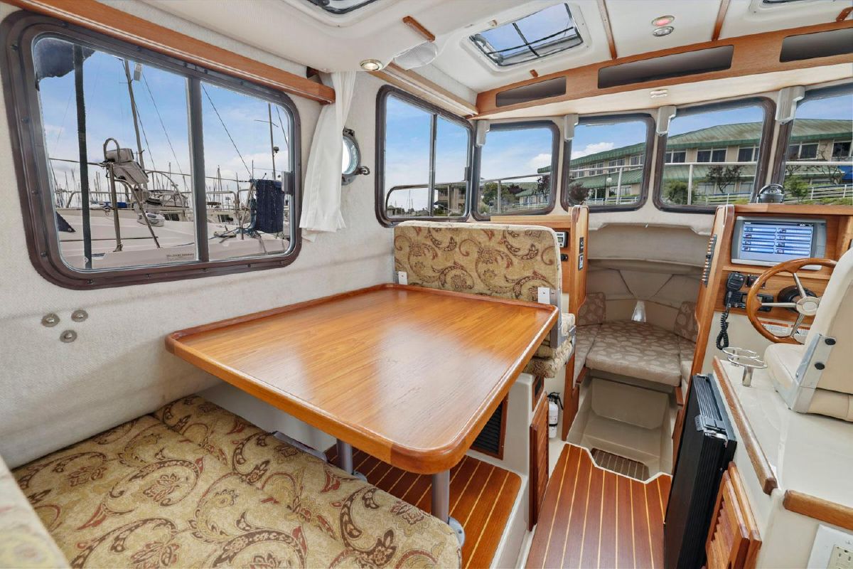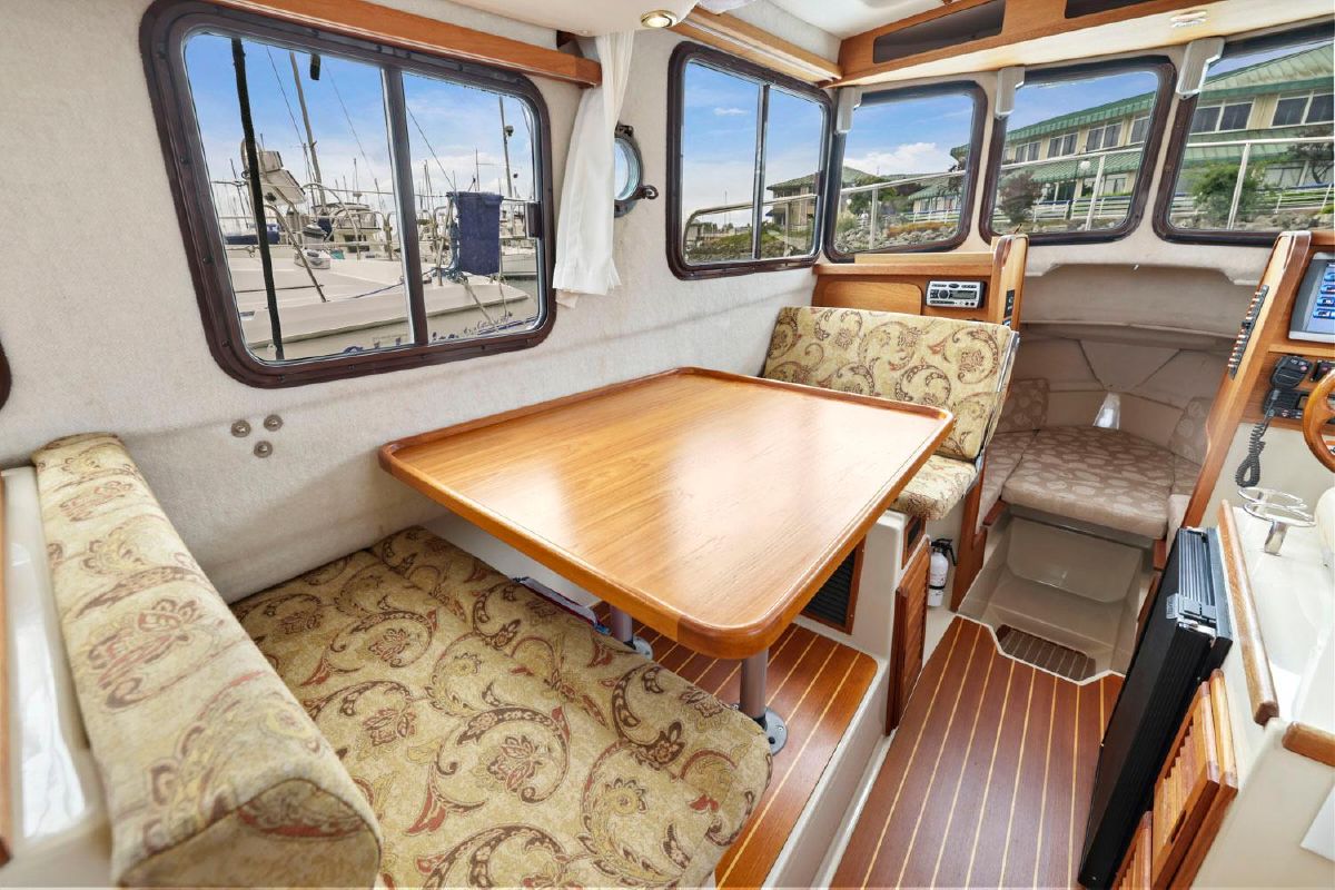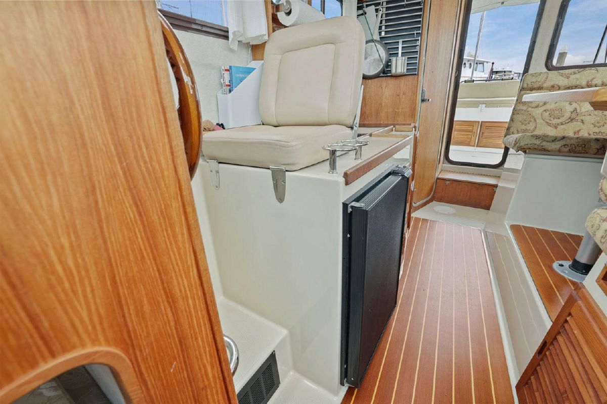 The aft deck is comfortable while under way, at the dock or at anchor. The bimini canvas is new, along with the curtains and shades that cover all windows. There are screens to enclose the aft deck, allowing for a cool breeze, but no bugs.