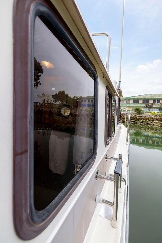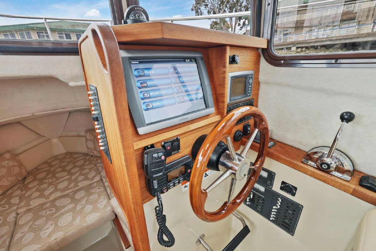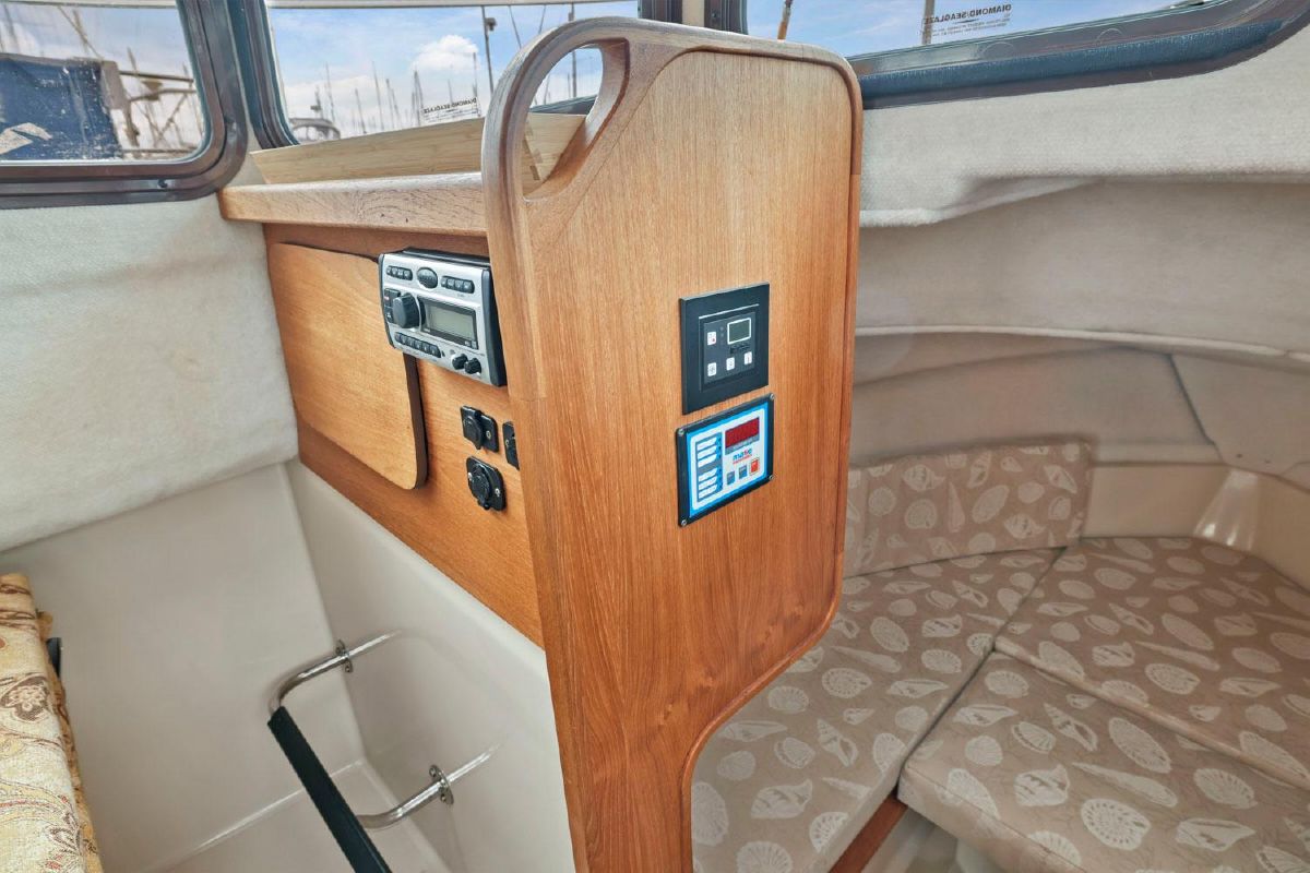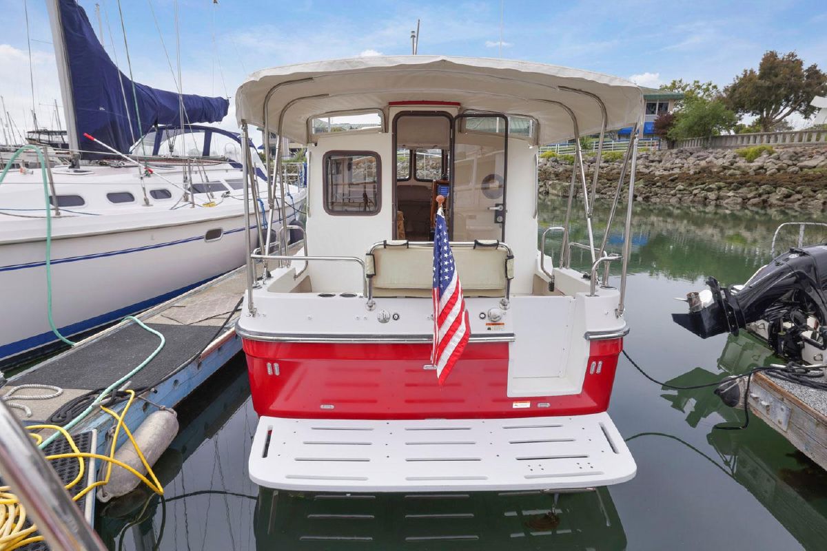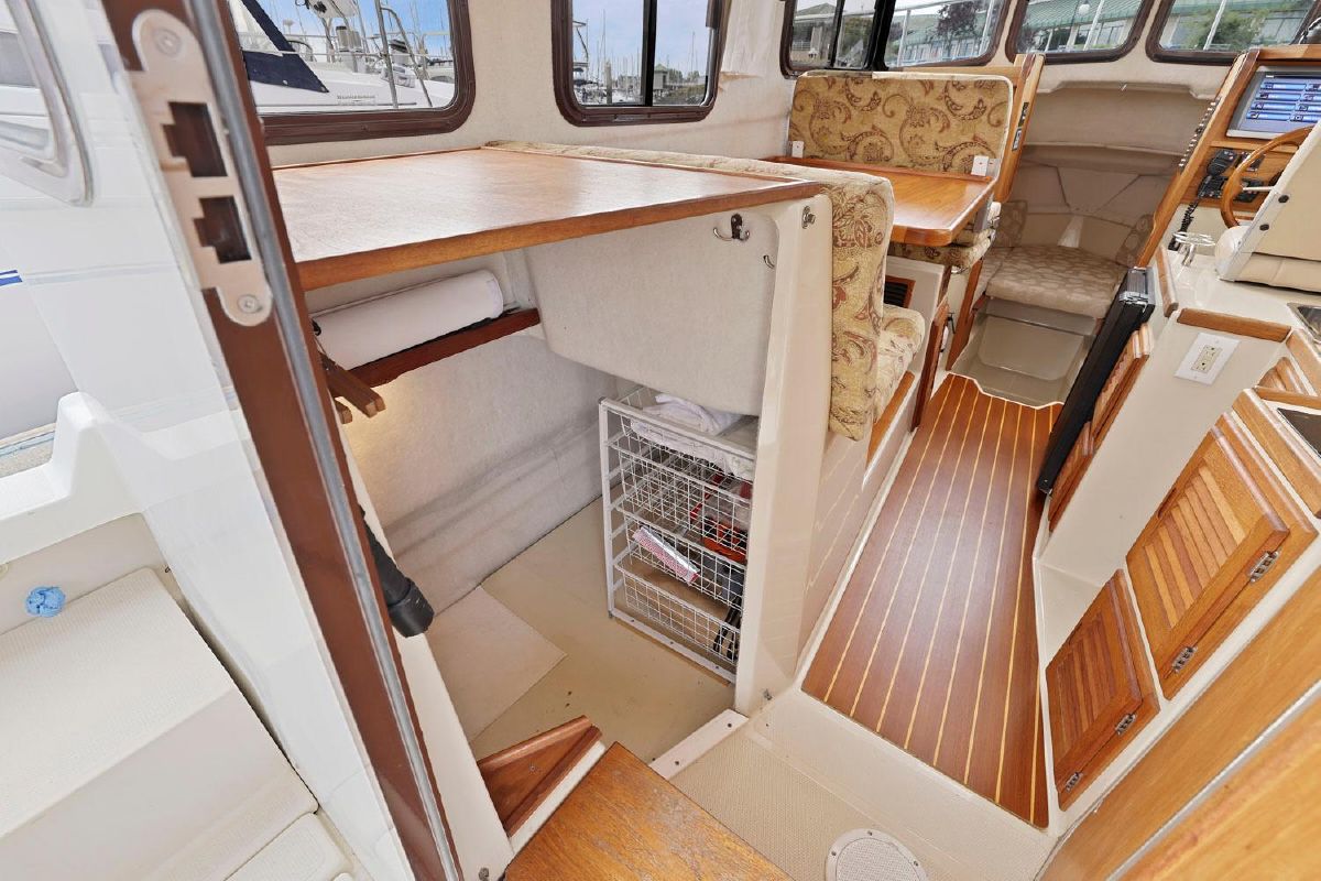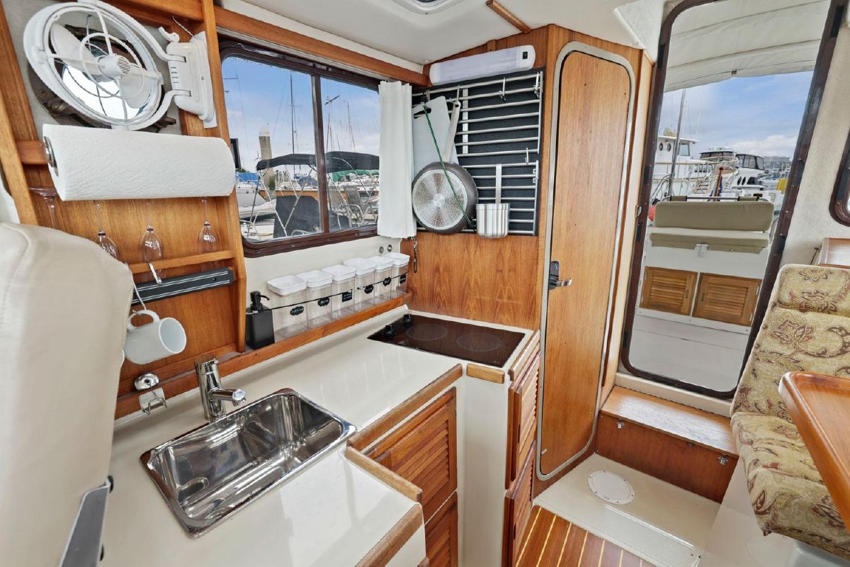 As with all Ranger Tugs the salon is full of natural light and the efficient use of space means that the serious cruising couple will always be comfortable in the cabin or cockpit. And the 8′ 6″ beam allows you to trailer her without special permits on the easy loading Aluminum Trailer. She has a compact galley and aft cabin, which is currently optimized for storage.