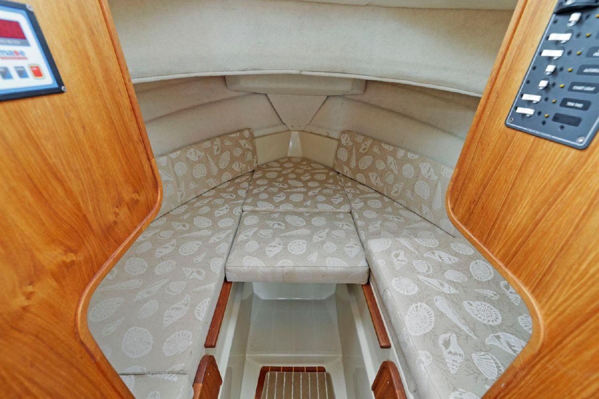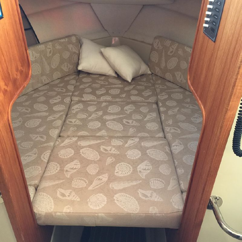 The forward v-berth comfortably sleeps two people, the dinette converts to a bed that can also sleep 2 people.